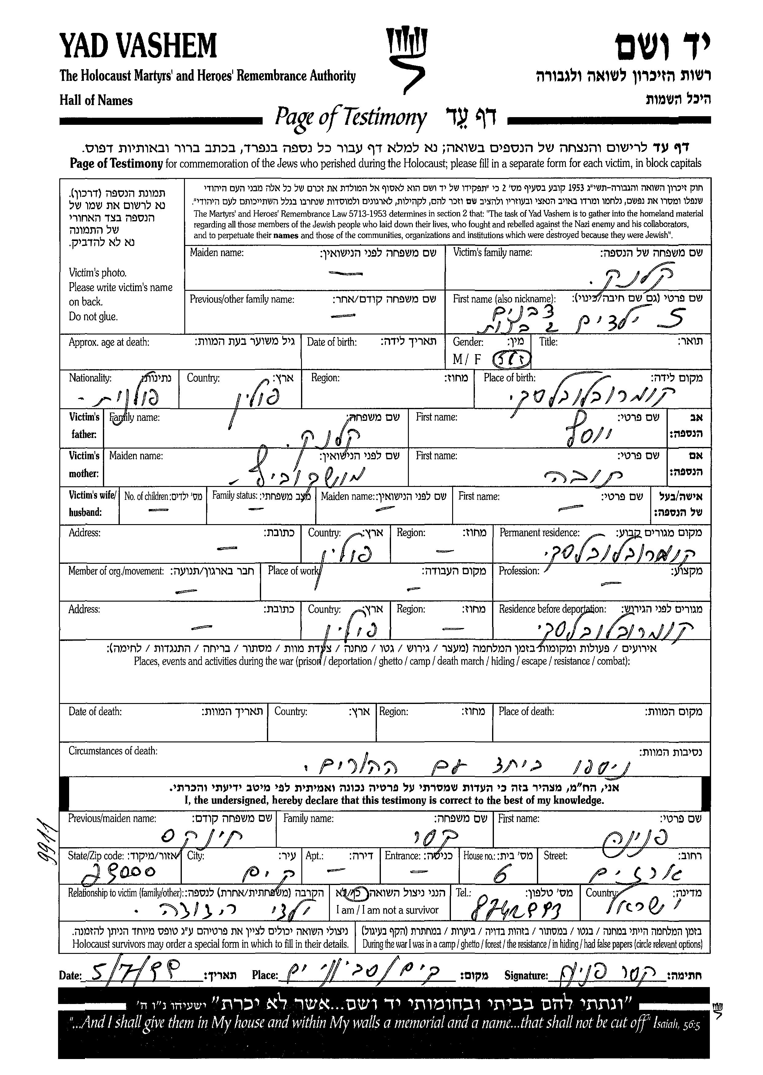 Vorname unbekannt Klang wurde in Komarow Lubelski, Polen geboren. Er war der Sohn von Yosef und Tova. Er war Kind. Vor dem Zweiten Weltkrieg lebte er in Komarow Lubelski, Polen. Während des Krieges war er in Komarow Lubelski, Polen.