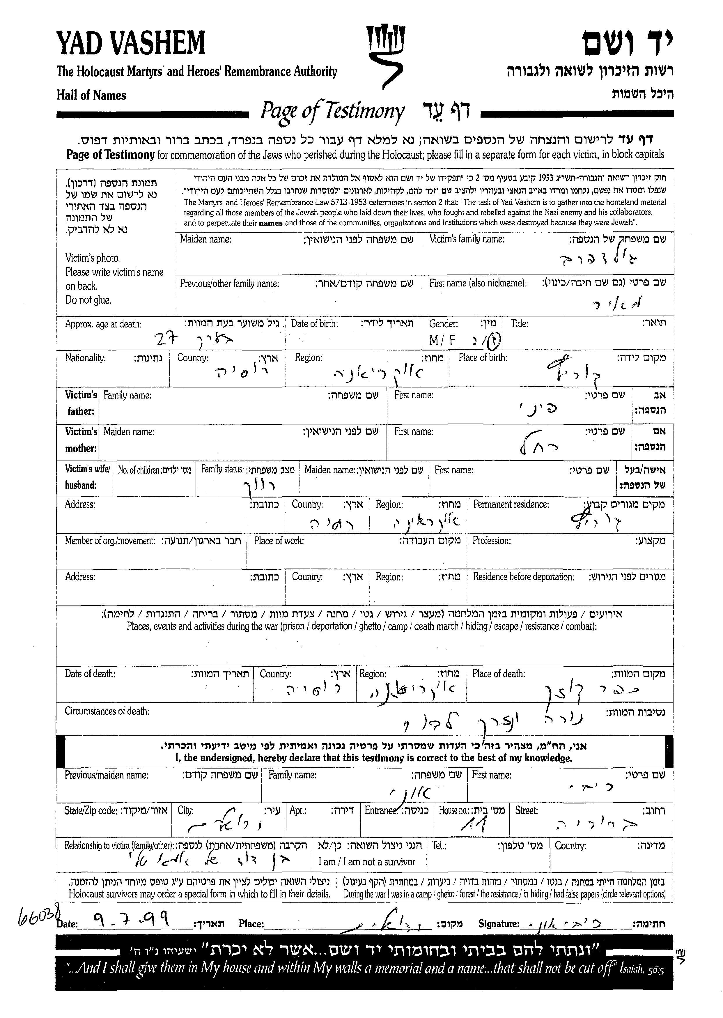 Goldfarb Meir Koritz, Polen Gedenkblatt