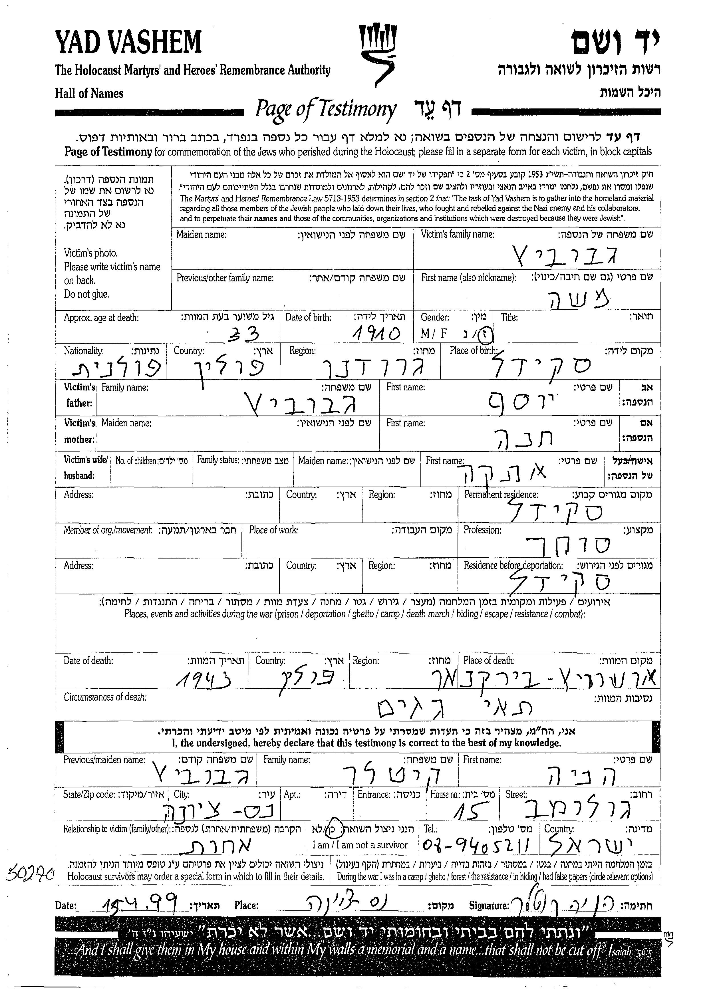 Moshe wurde in der Schoah ermordet. Todesort: Auschwitz, Polen im Jahr 1943.