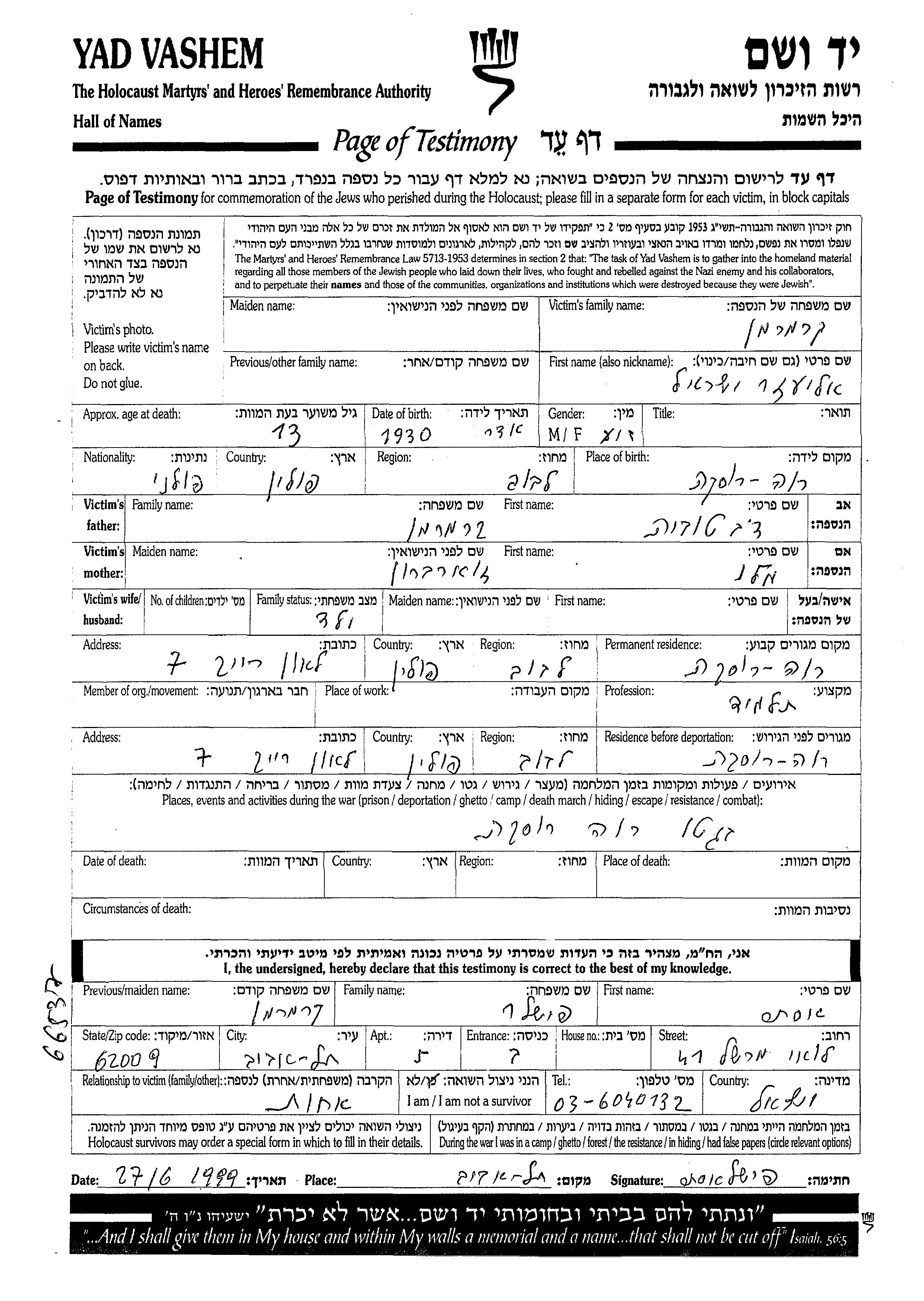 Eliezer Yisrael wurde in der Schoah ermordet.