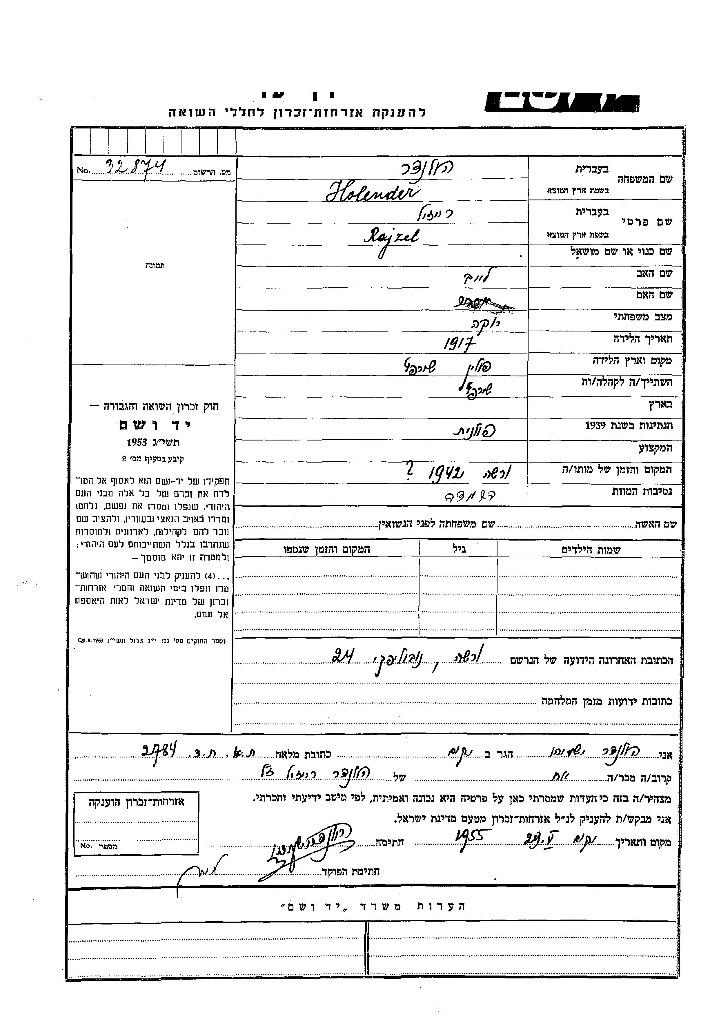 Suche nach einem Todesjahr im Zeitraum der Holocaust: 1933 bis 1945. Bitte wählen Sie 'Exakt' im Auswahlmenü, um nur nach einem einzelnen Jahr zu suchen, alternativ können Sie die flexibleren Optionen '+/- 2 Jahre' oder '+/- 5 Jahre' wählen.