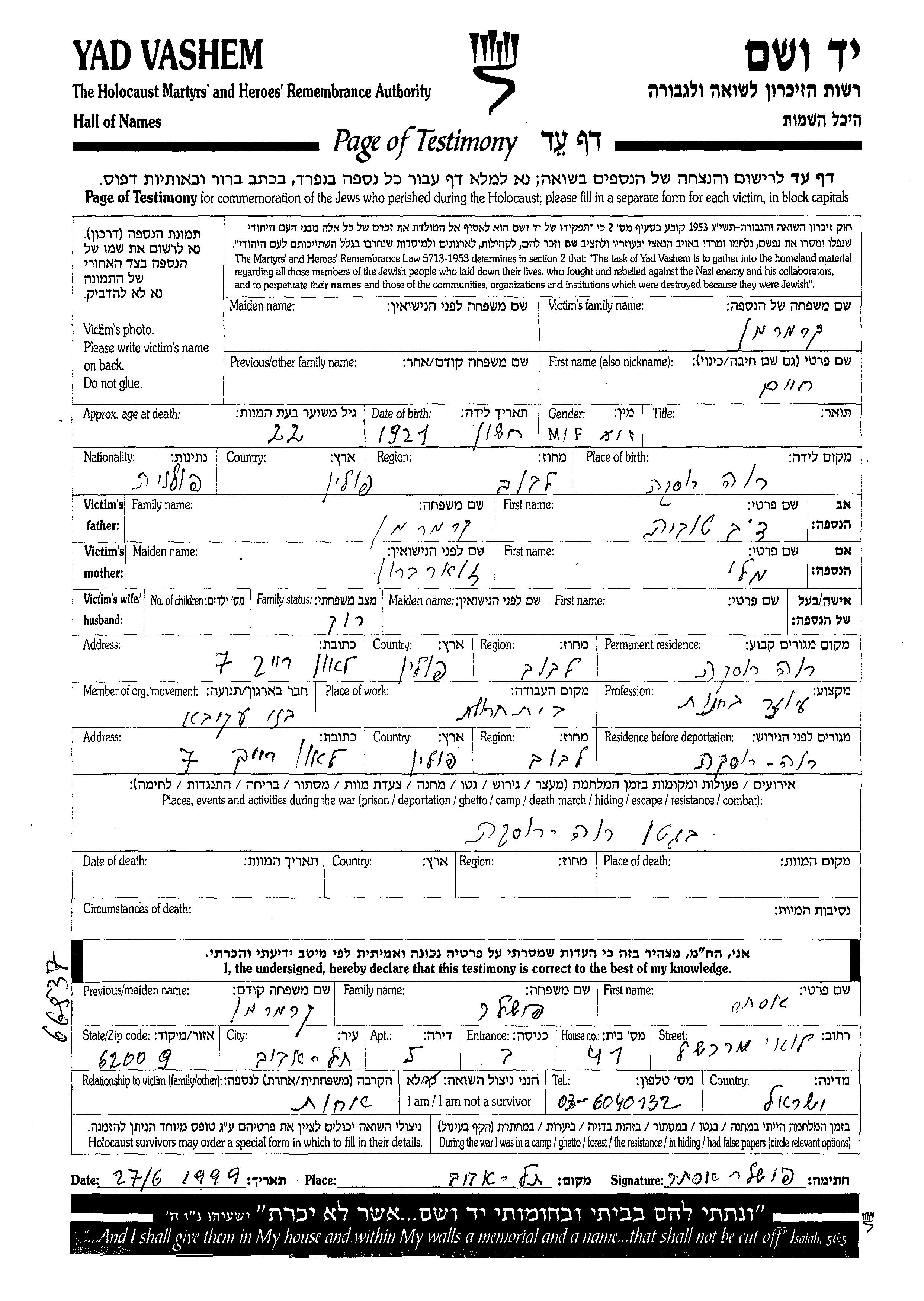 Suche nach einem Todesjahr im Zeitraum der Holocaust: 1933 bis 1945. Bitte wählen Sie 'Exakt' im Auswahlmenü, um nur nach einem einzelnen Jahr zu suchen, alternativ können Sie die flexibleren Optionen '+/- 2 Jahre' oder '+/- 5 Jahre' wählen.