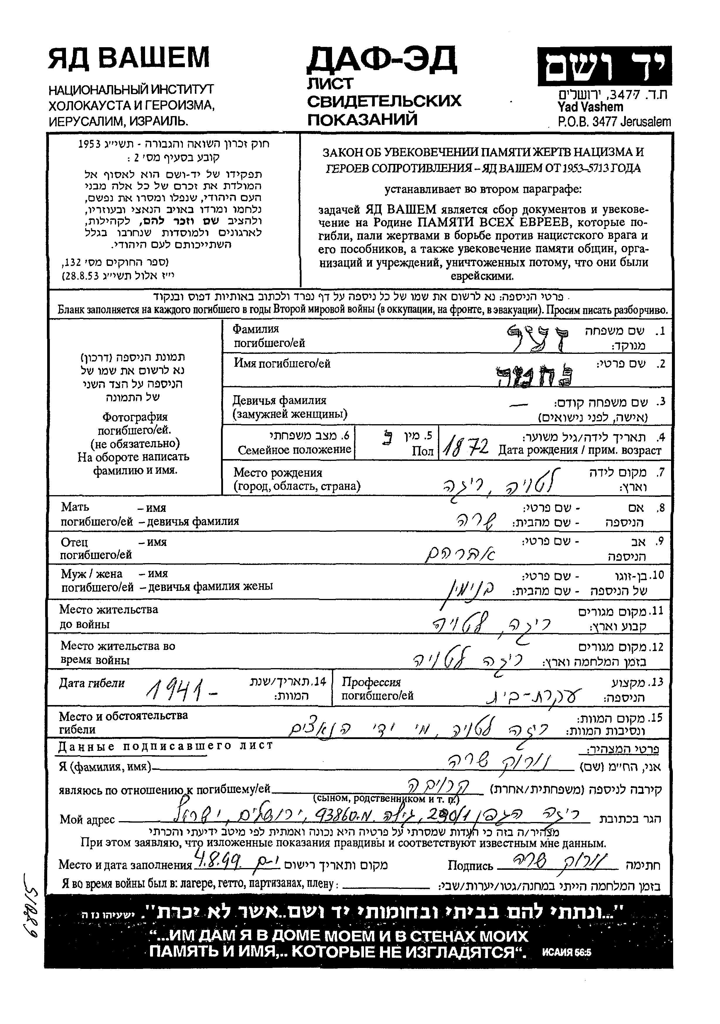 Nekhama wurde in der Schoah ermordet. Todesort: Riga, Lettland im Jahr 1941.