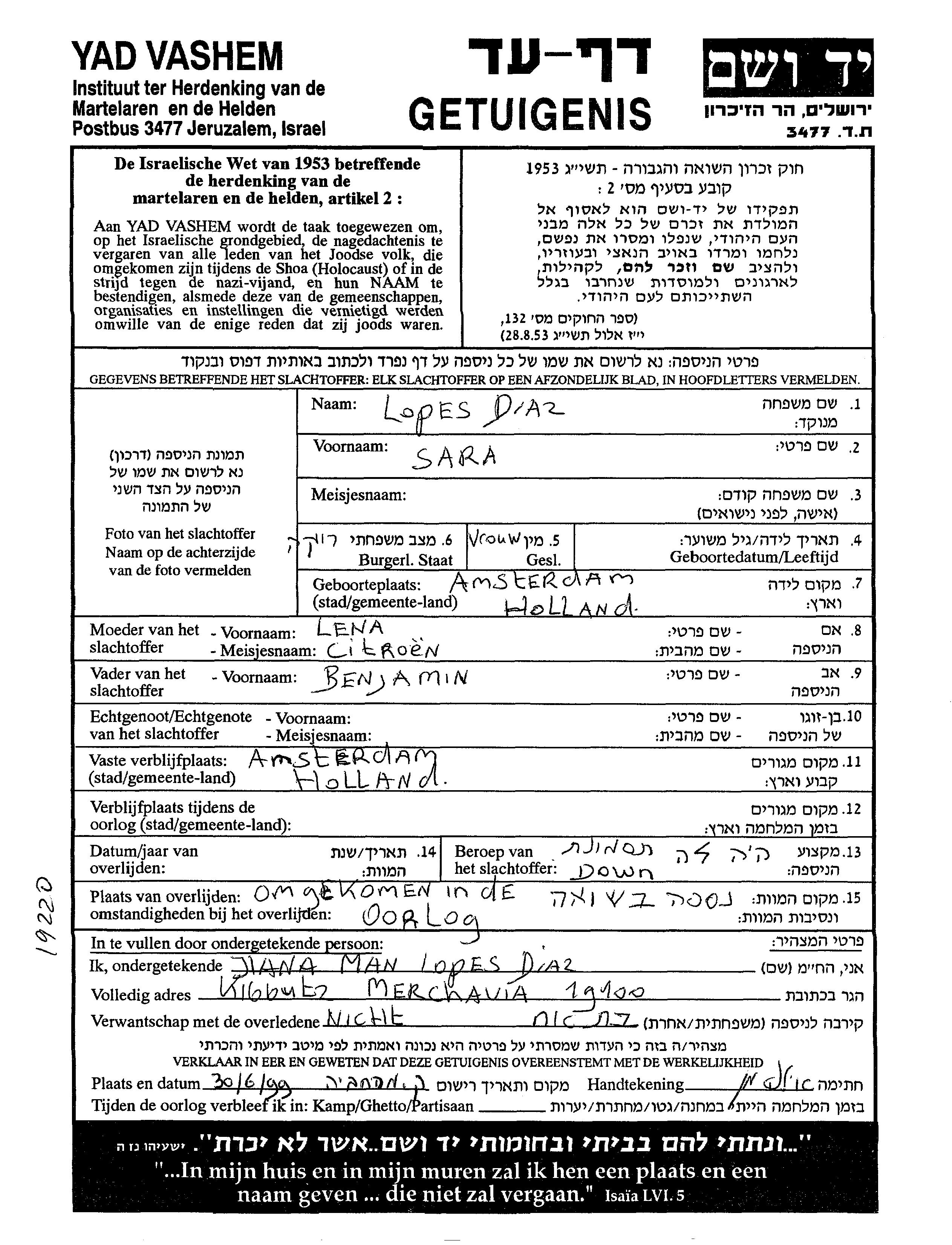 Sara Lopes Diaz wurde in Amsterdam, Niederlande geboren. Sie war die Tochter von Benjamin und Lena. Sie war Ledig. Vor dem Zweiten Weltkrieg lebte sie in Amsterdam, Niederlande.