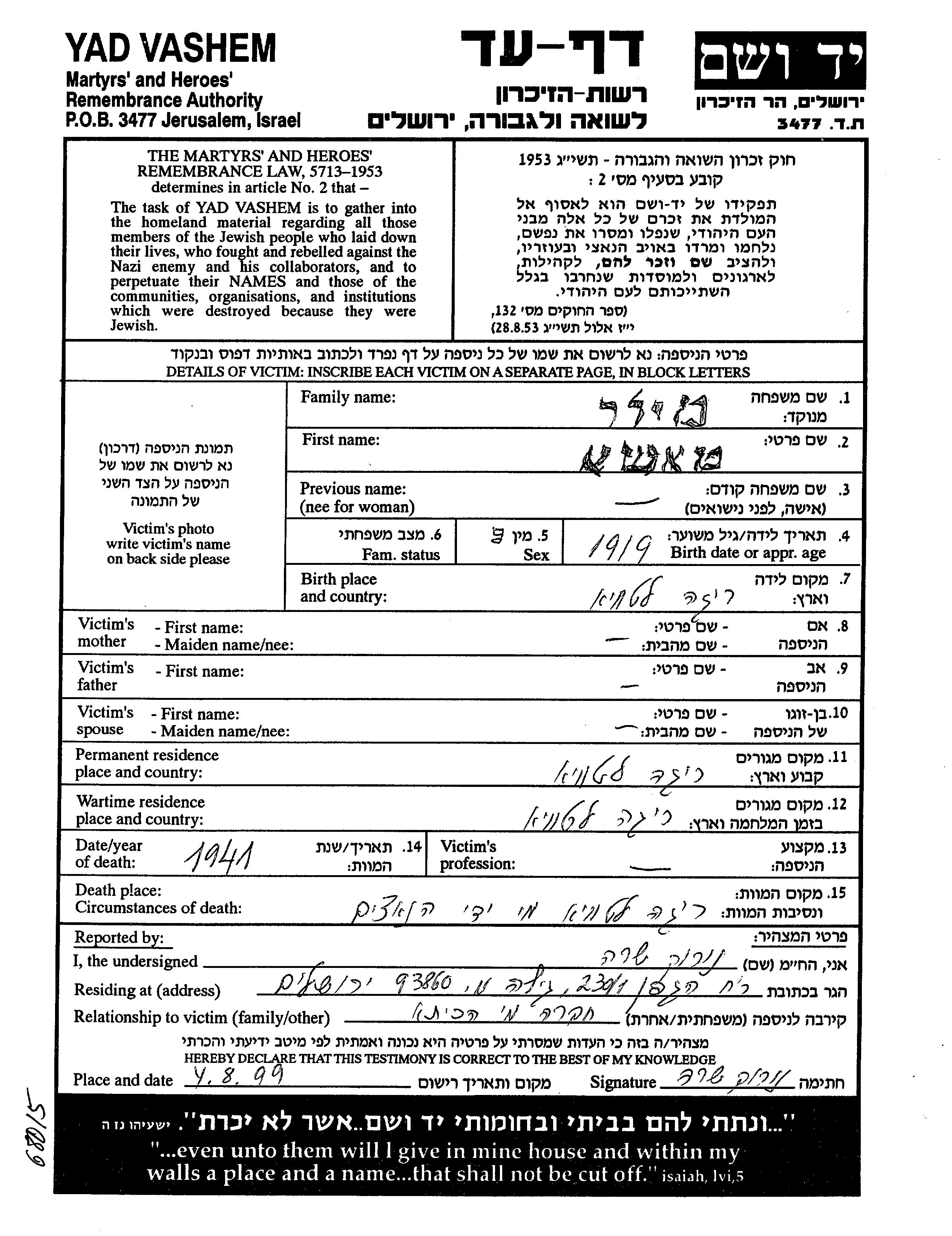 Masha wurde in der Schoah ermordet. Todesort: Riga, Lettland im Jahr 1941.