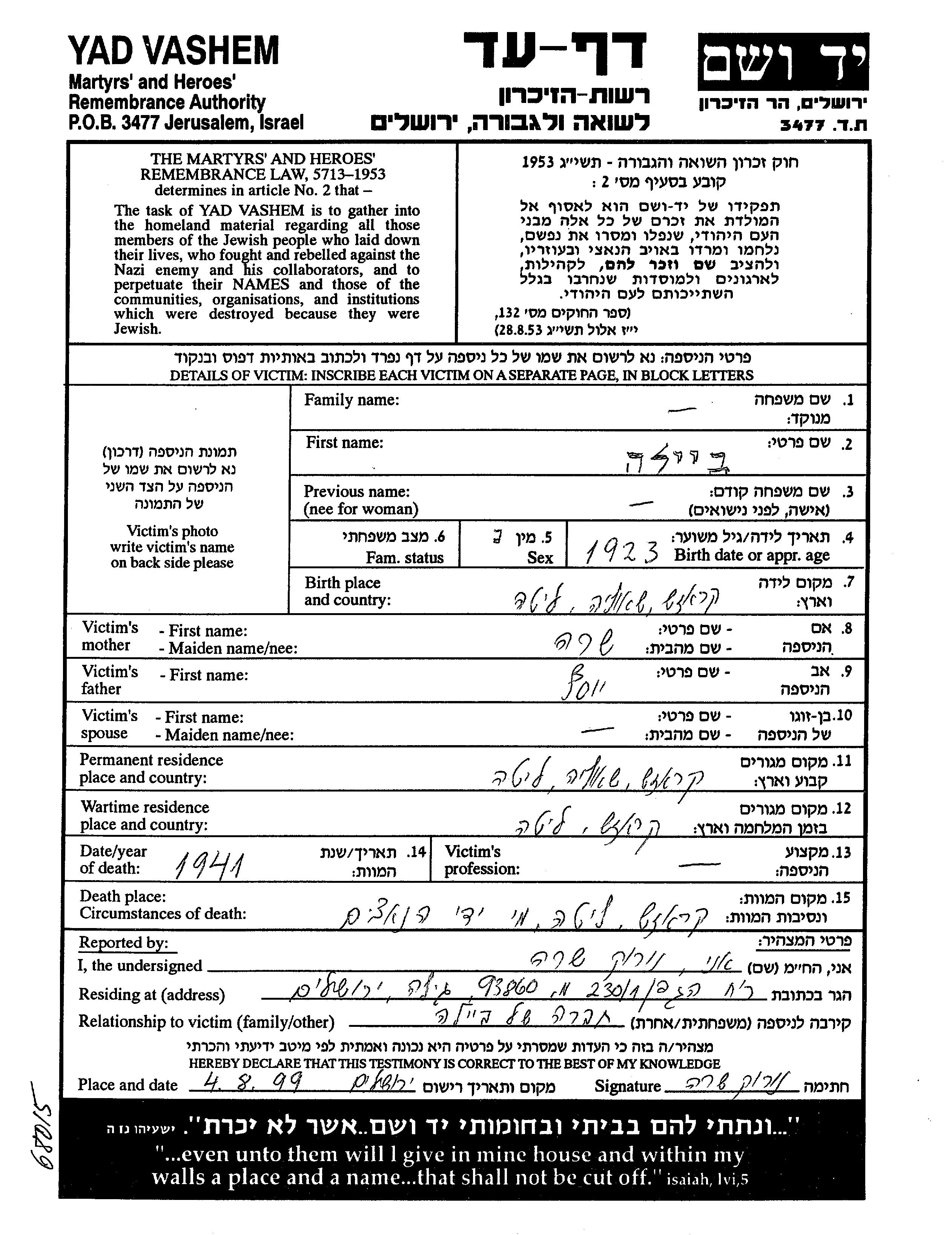 Beila Name unbekannt wurde im Jahr 1923 in Krozhe, Litauen geboren. Sie war die Tochter von Yosef und Sara. Vor dem Zweiten Weltkrieg lebte sie in Krozhe, Litauen. Während des Krieges war sie in Krozhe, Litauen.