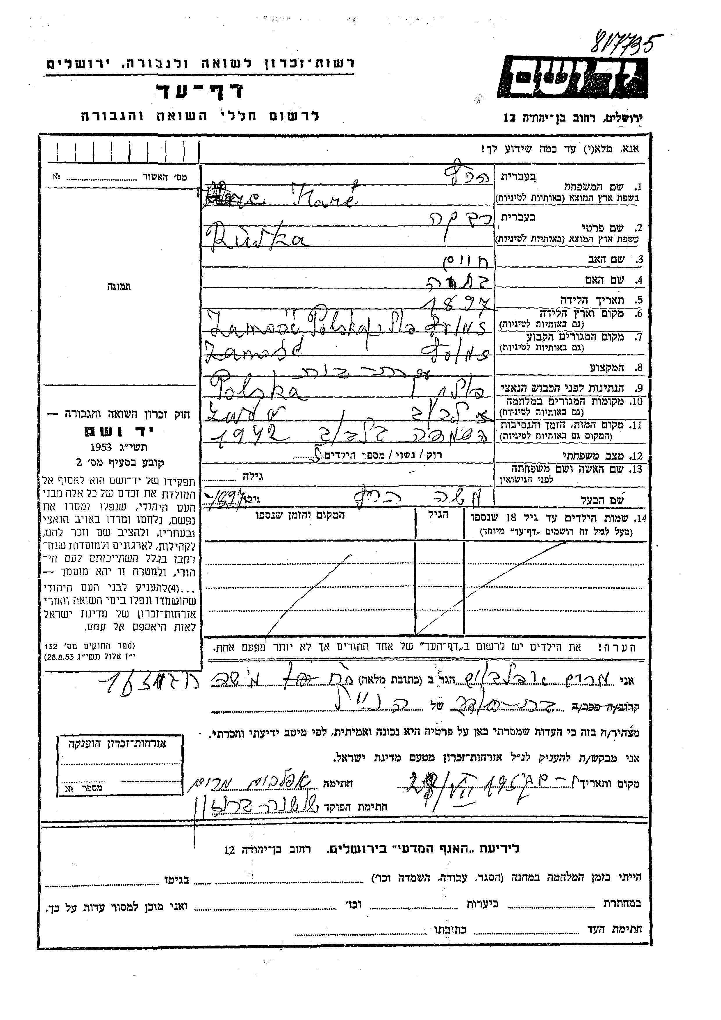 Riwka wurde in der Schoah ermordet. Todesort: Lwow, Polen im Jahr 1942.