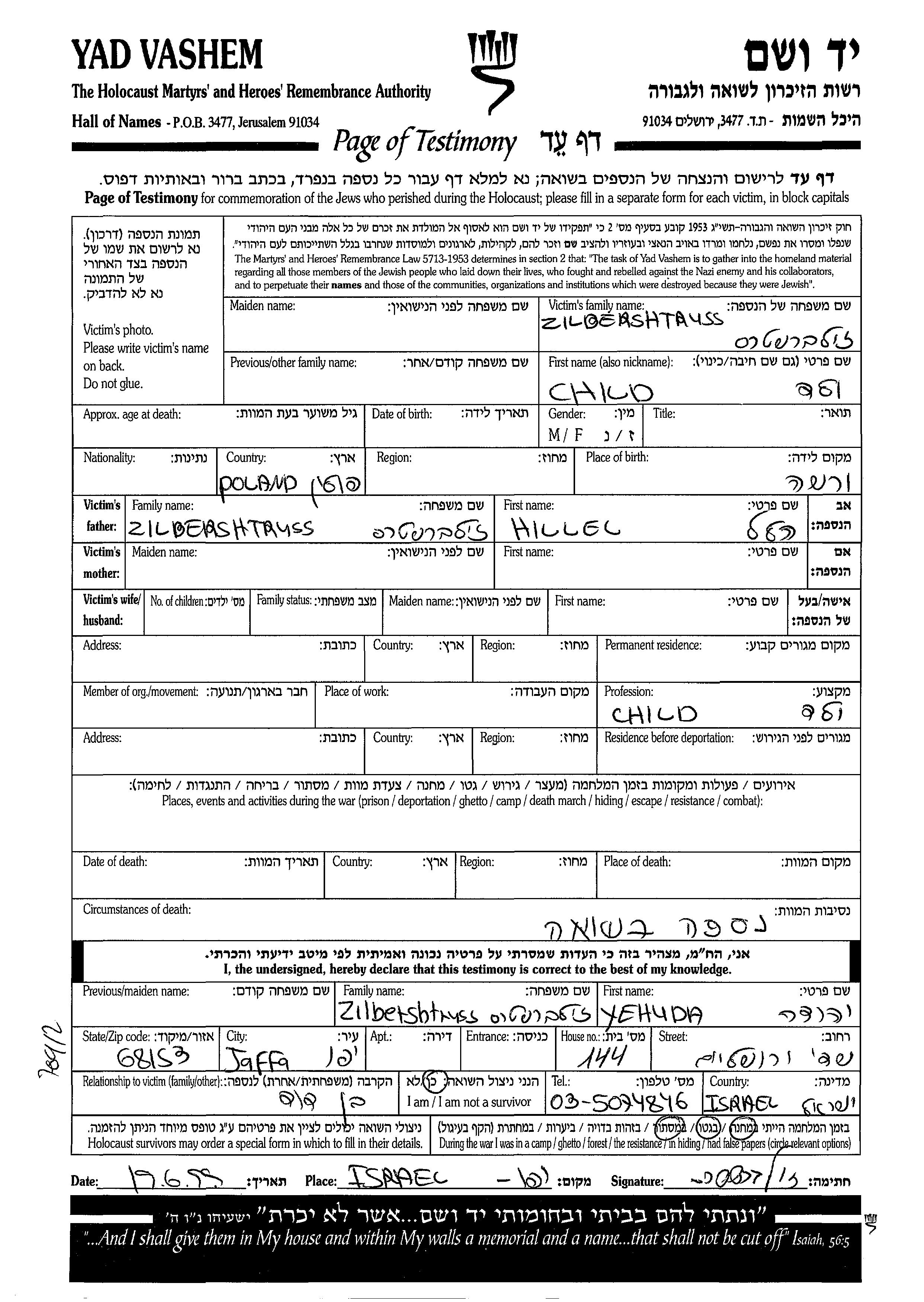 Vorname unbekannt Zilbershtruss wurde in Warszawa, Polen geboren. Er war der Sohn von Hillel. Er war Kind.