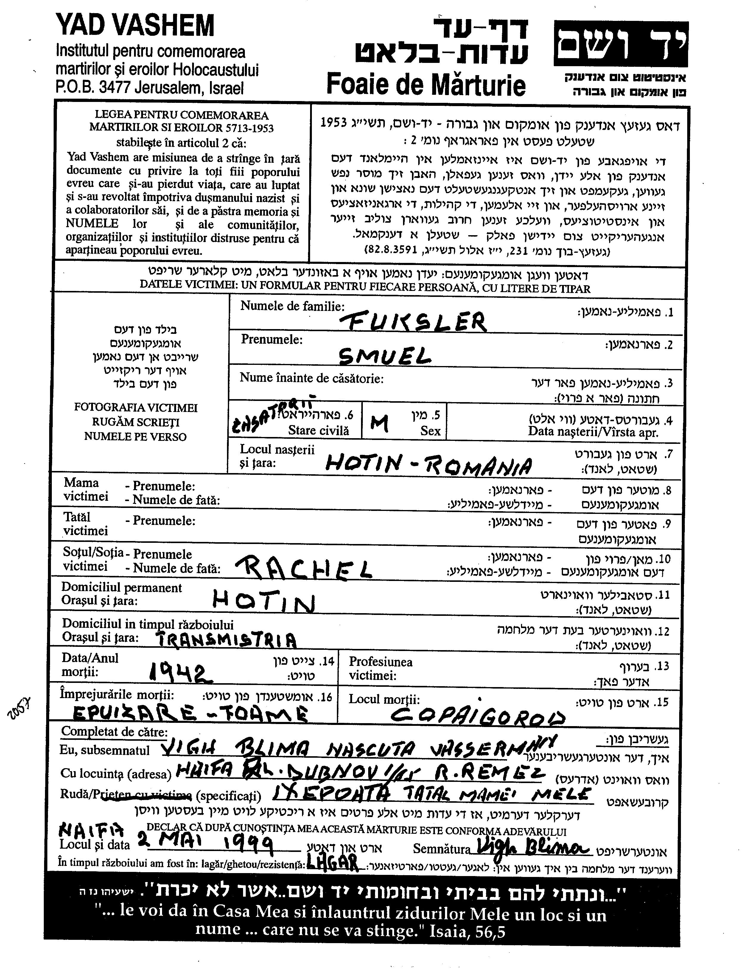 Juden wurden in der Schoah auf verschiedenste Weisen ermordet, unter anderem: Vergasen, Erschiessen, lebendig verbrannt werden, lebendig begraben werden, Tod durch Erschöpfung durch Zwangsarbeit, Epidemien, mangels jeder hygienischer Bedingung oder dem Fehlen medizinischer Versorgung. Manche Juden nahmen sich das Leben, um der Festnahme und weiterer Verfolgung zu entgehen oder ihr hoffnungsloses, nicht nachlassendes Leiden zu beenden. Zehntausende jüdische Soldaten der sowjetischen Armee, die als Kriegsgefangene gefangen genommen wurden, wurden als Juden selektiert und ermordet. Viele wurden als „vermisst“ registriert.