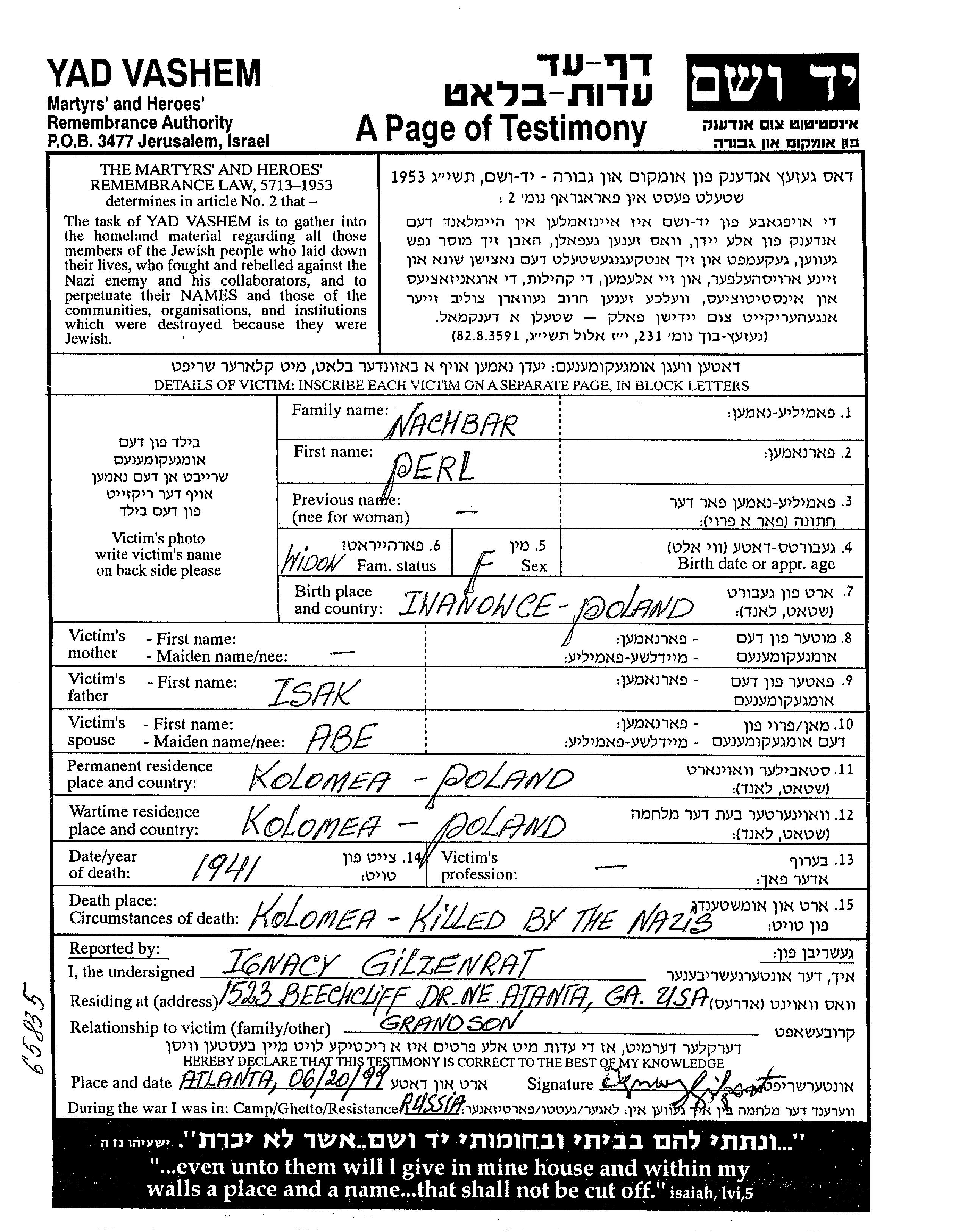 Perl wurde in der Schoah ermordet. Todesort: Kolomyja, Polen im Jahr 1941.