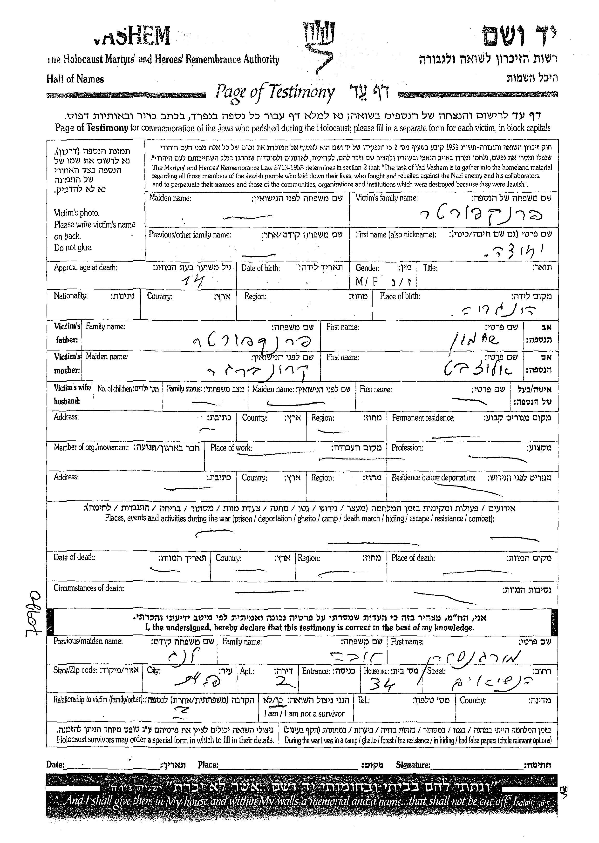 Vorname des Vaters:
