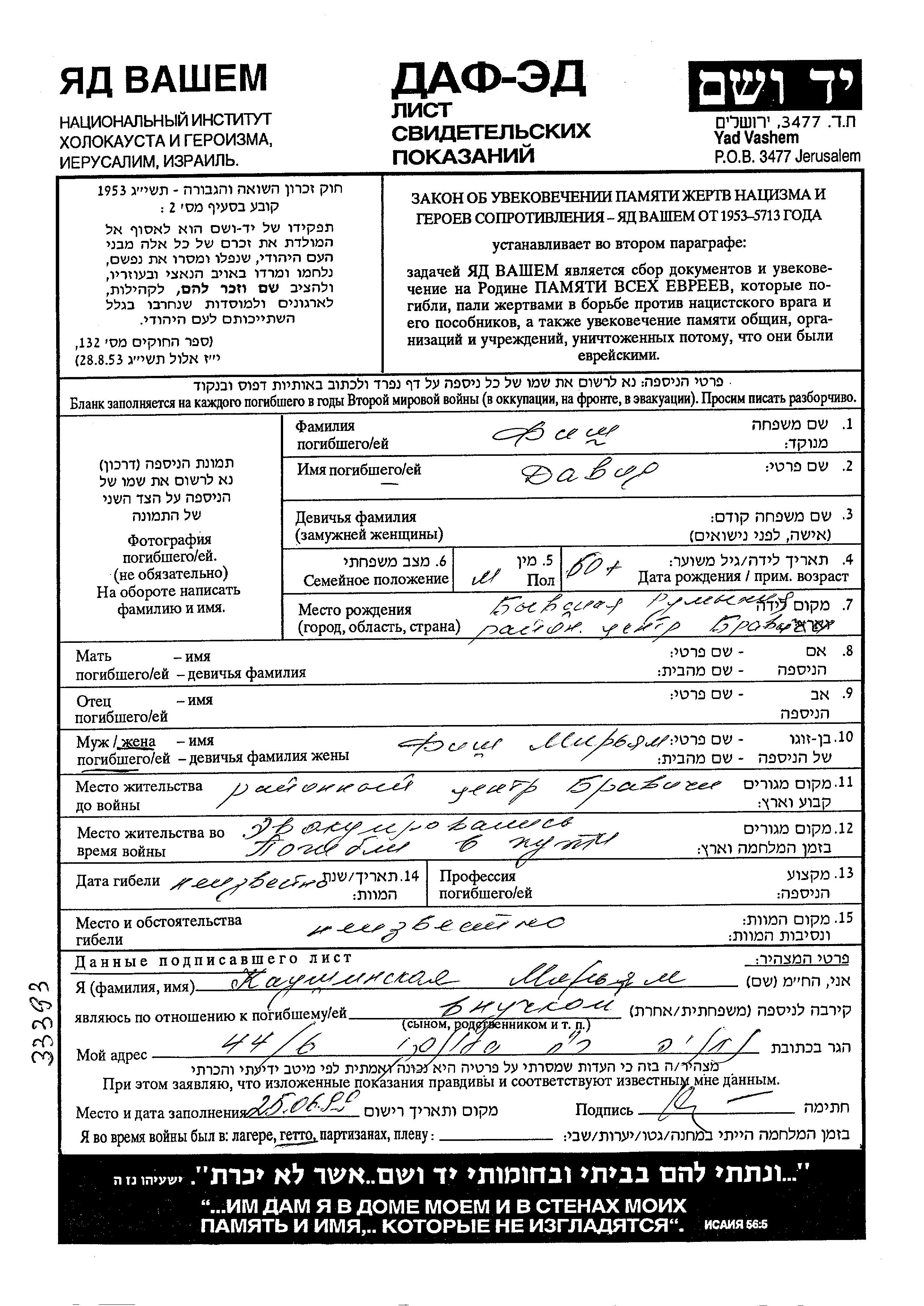 David Fish wurde in Bravicha, Rumänien geboren. Vor dem Zweiten Weltkrieg lebte er in Bravicha, Rumänien. Während des Krieges war er in Bravicha, Rumänien.