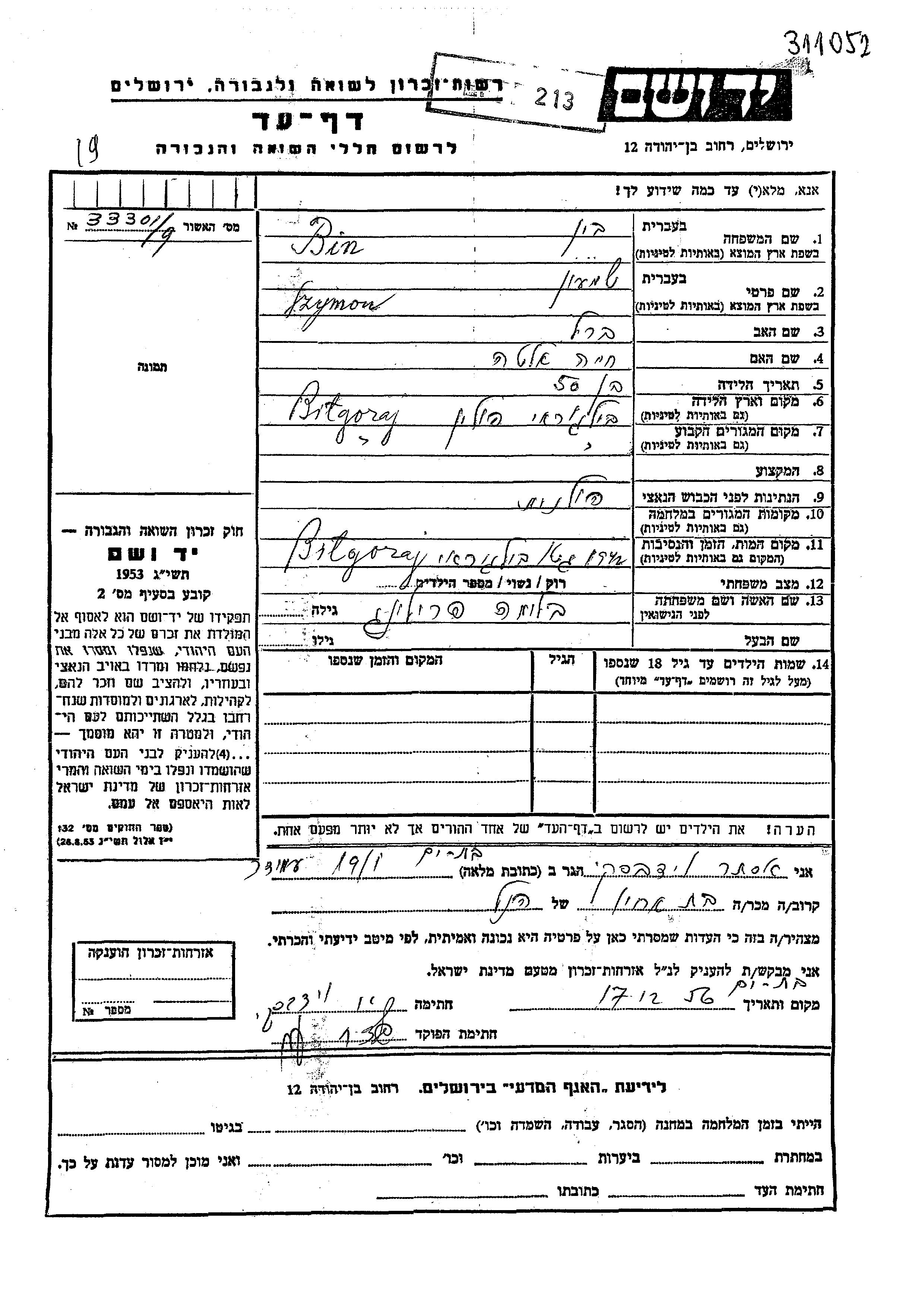 Szymon Bin wurde Er war der Sohn von Berl und Khaia Alte. Er war mit Bluma, geb. Friling Verheiratet.