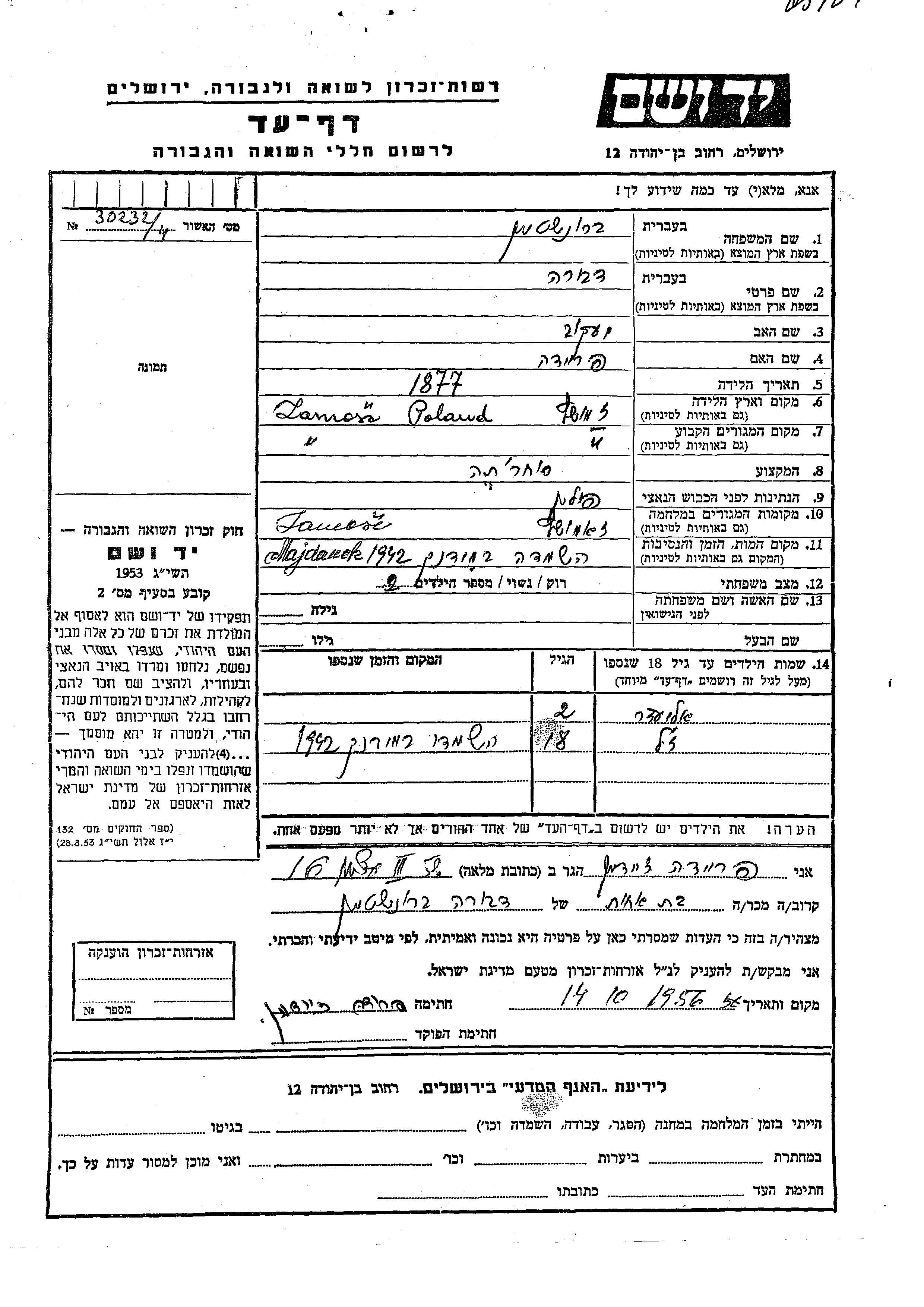 Dvora wurde in der Schoah ermordet. Todesort: Majdanek, Polen im Jahr 1942.