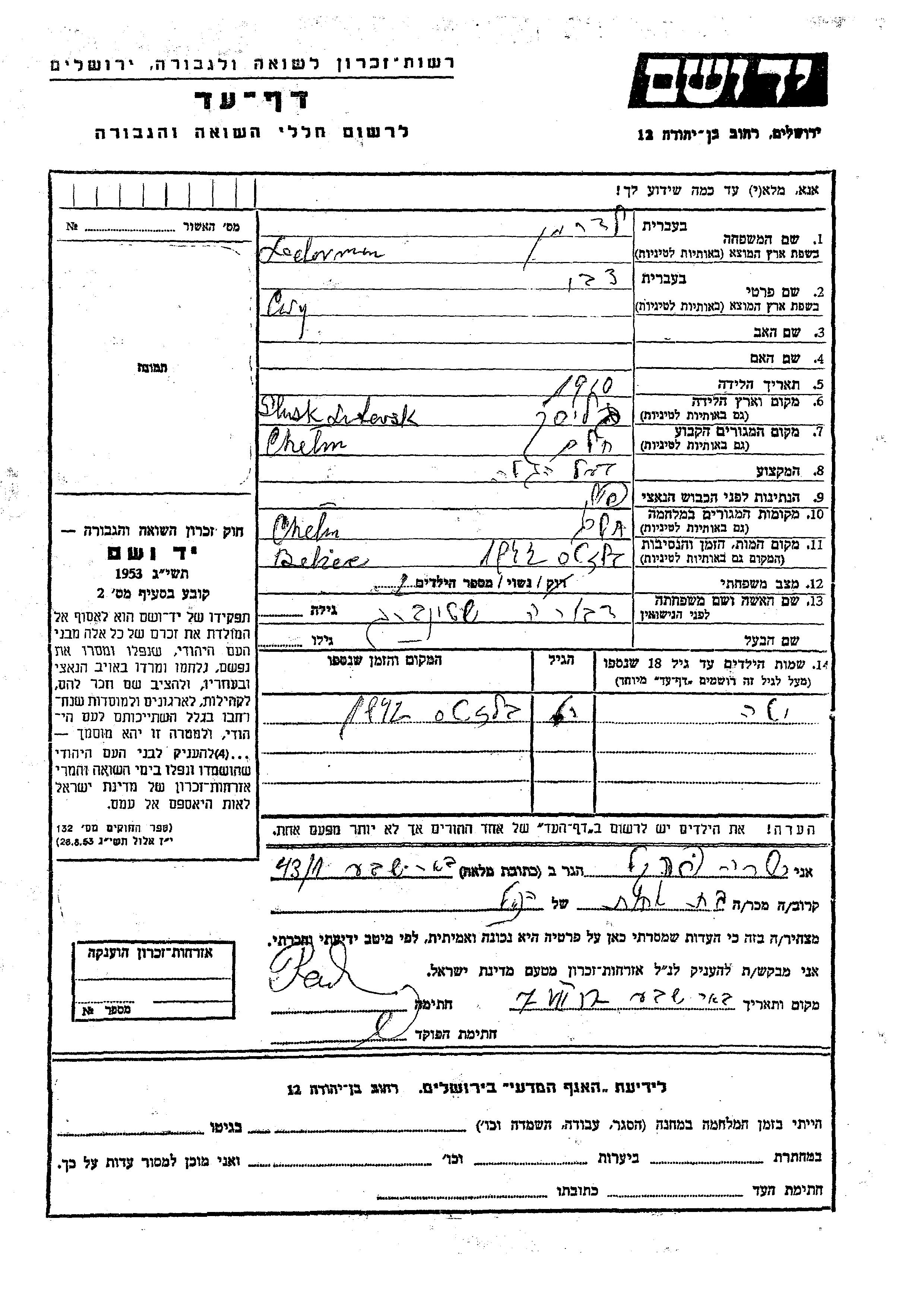 Cwy Lederman wurde im Jahr 1910 in Glisk, Polen geboren. Er war Fuhrmann und mit Dvora, geb. Shteinberg Verheiratet. Vor dem Zweiten Weltkrieg lebte er in Chelm, Polen. Während des Krieges war er in Chelm, Polen.