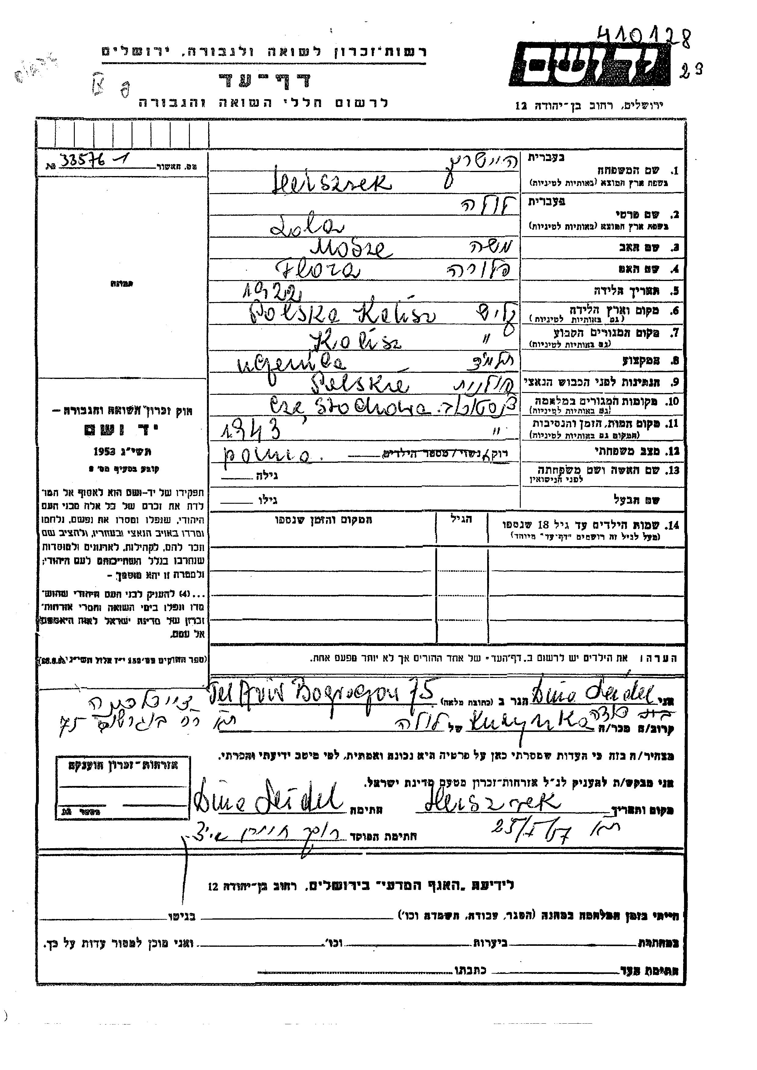 Lola wurde in der Schoah ermordet. Todesort: Czestochowa, Polen im Jahr 1943.