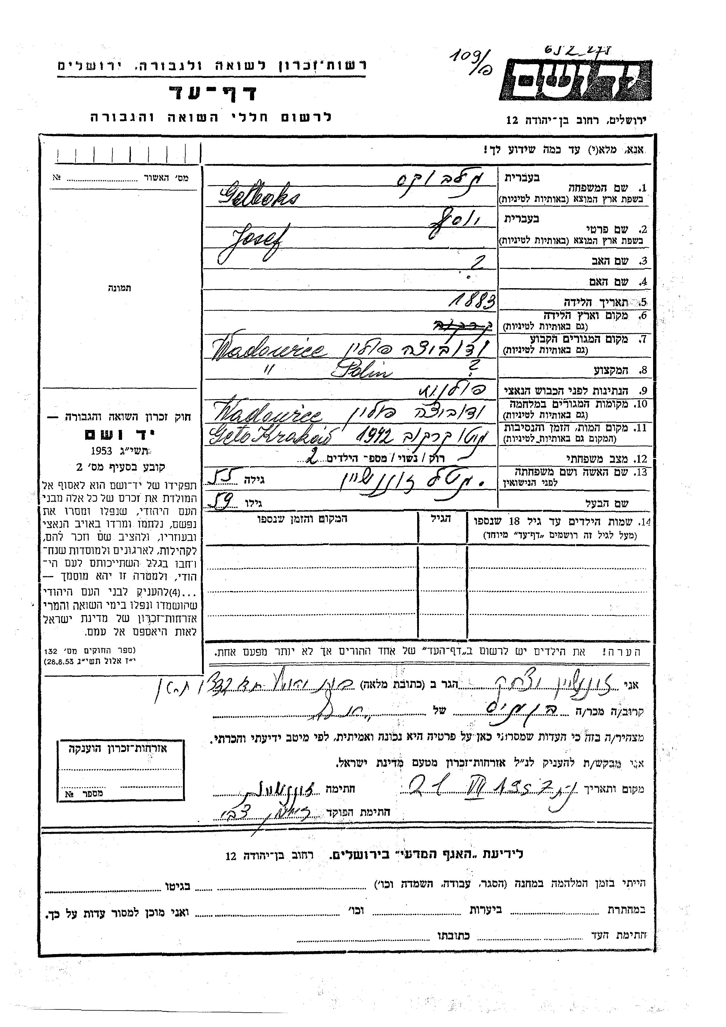 Aufenthaltsort während des Krieges/Schoah