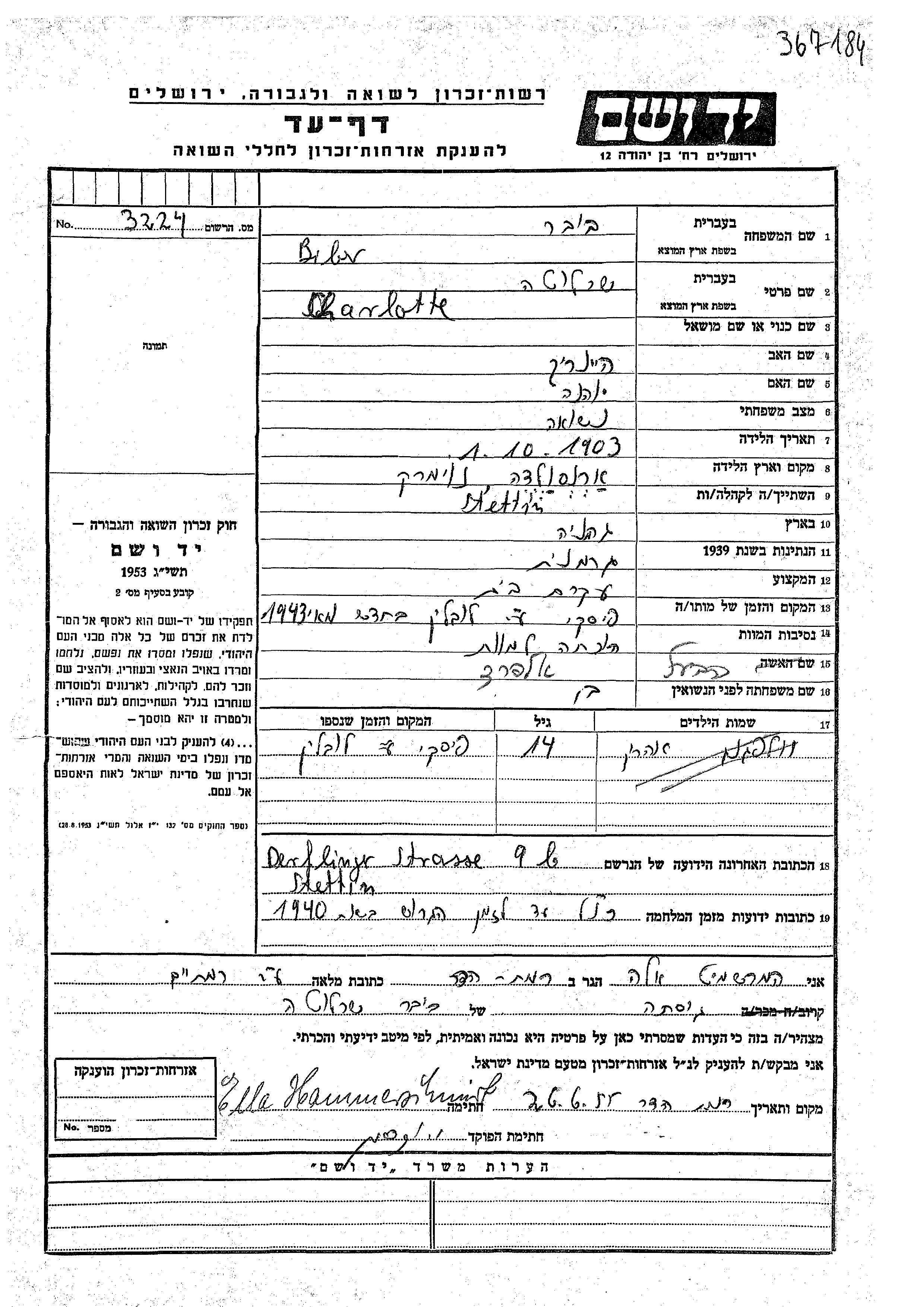 Charlotte wurde in der Schoah ermordet. Todesort: Piaski, Polen im Jahr 1943.