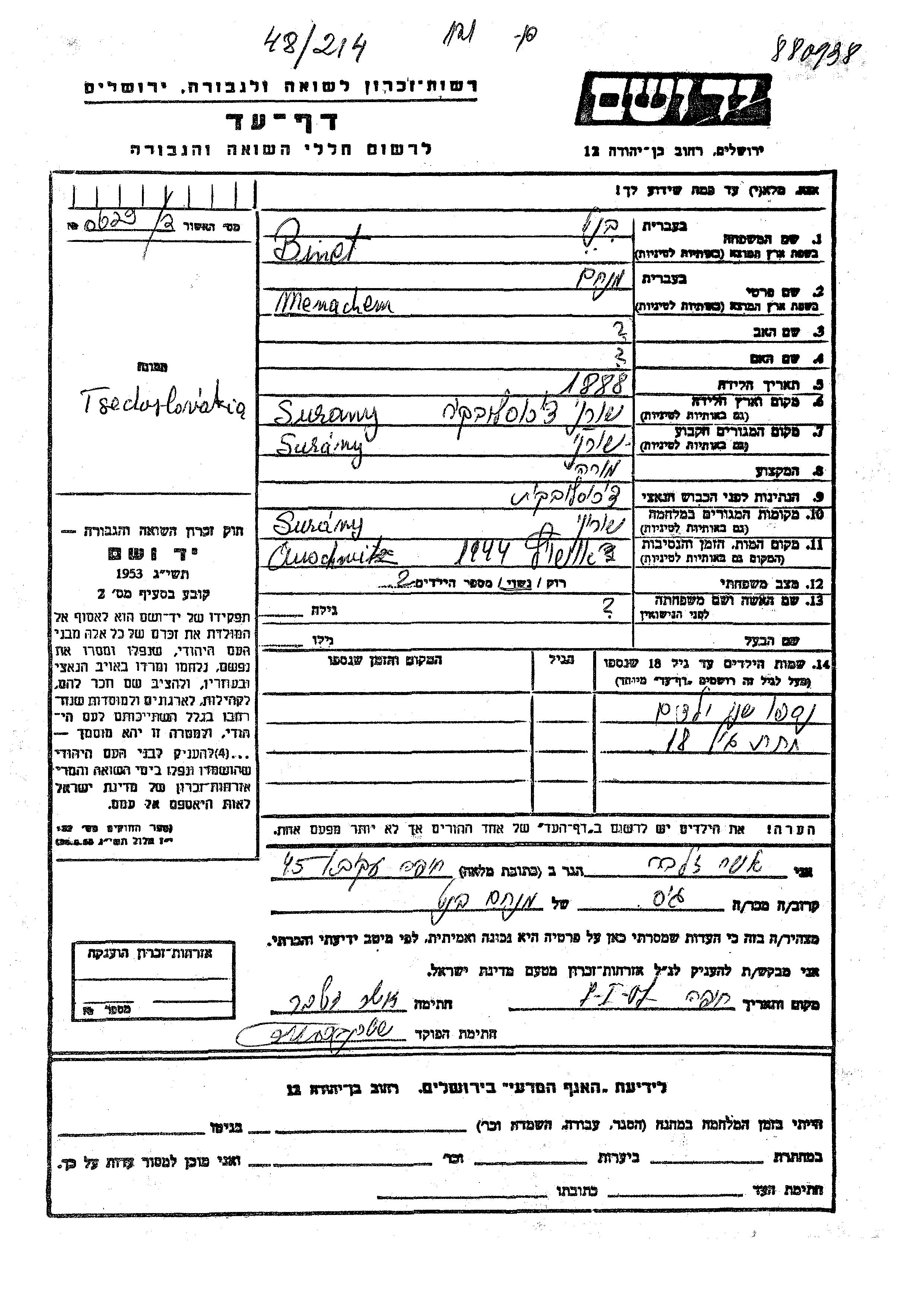 Menachem Binet Banet wurde im Jahr 1888 in Surany, Tschechoslowakei geboren. Er war Lehrer/in und Verheiratet. Vor dem Zweiten Weltkrieg lebte er in Surany, Tschechoslowakei. Während des Krieges war er in Surany, Tschechoslowakei.
