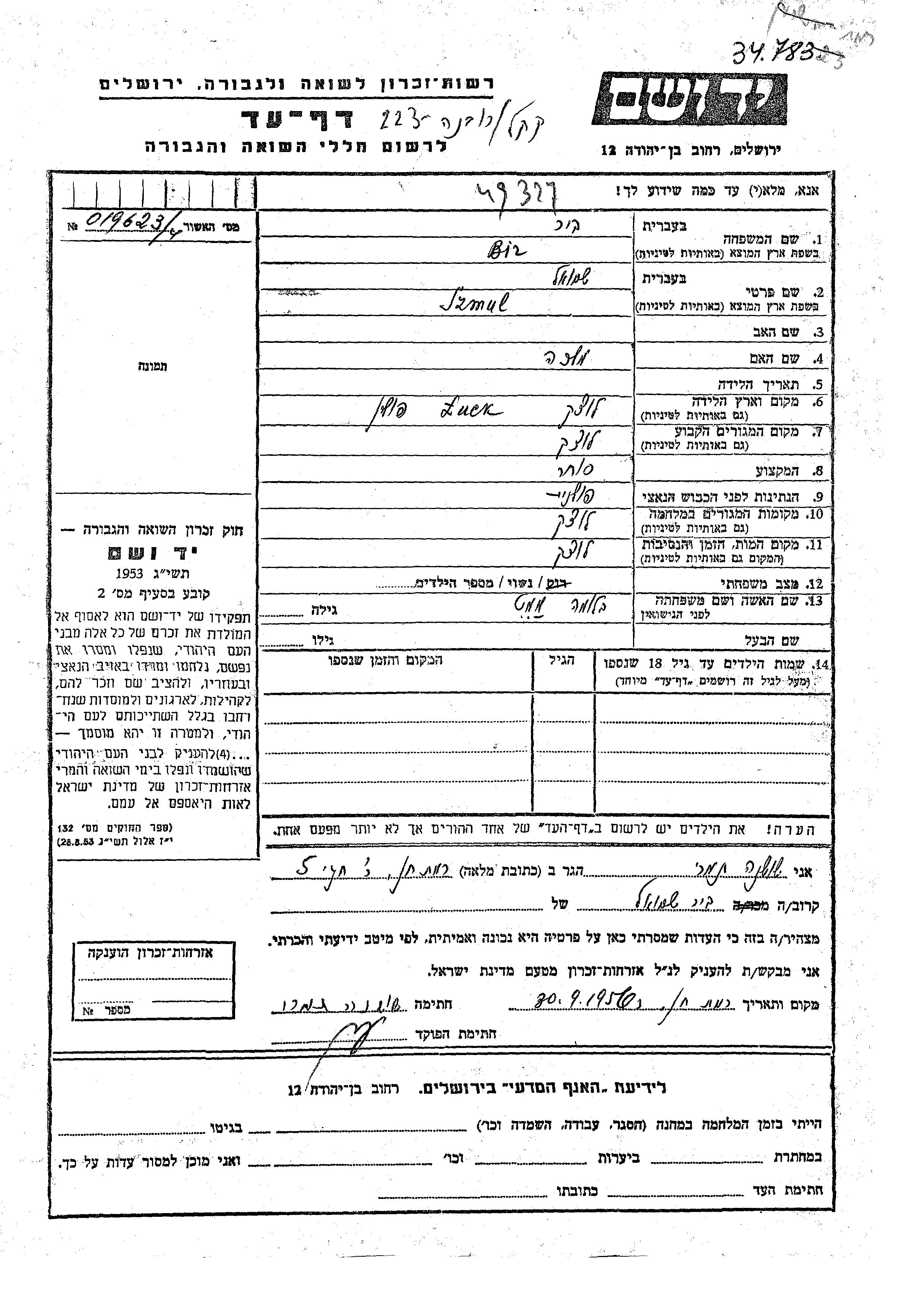Szmul wurde in der Schoah ermordet. Todesort: Luck, Polen.