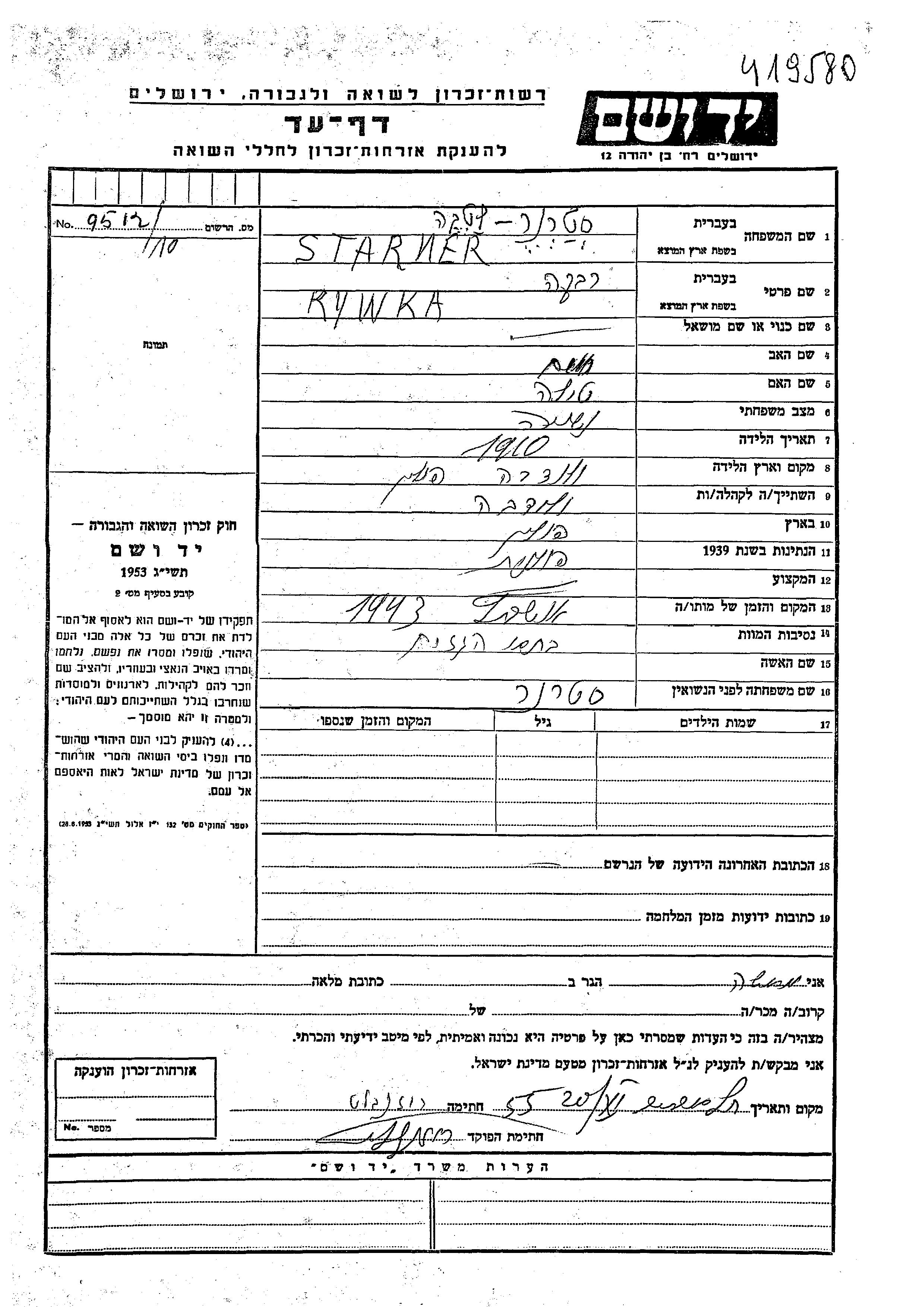 Rywka wurde in der Schoah ermordet. Todesort: Auschwitz, Polen im Jahr 1943.