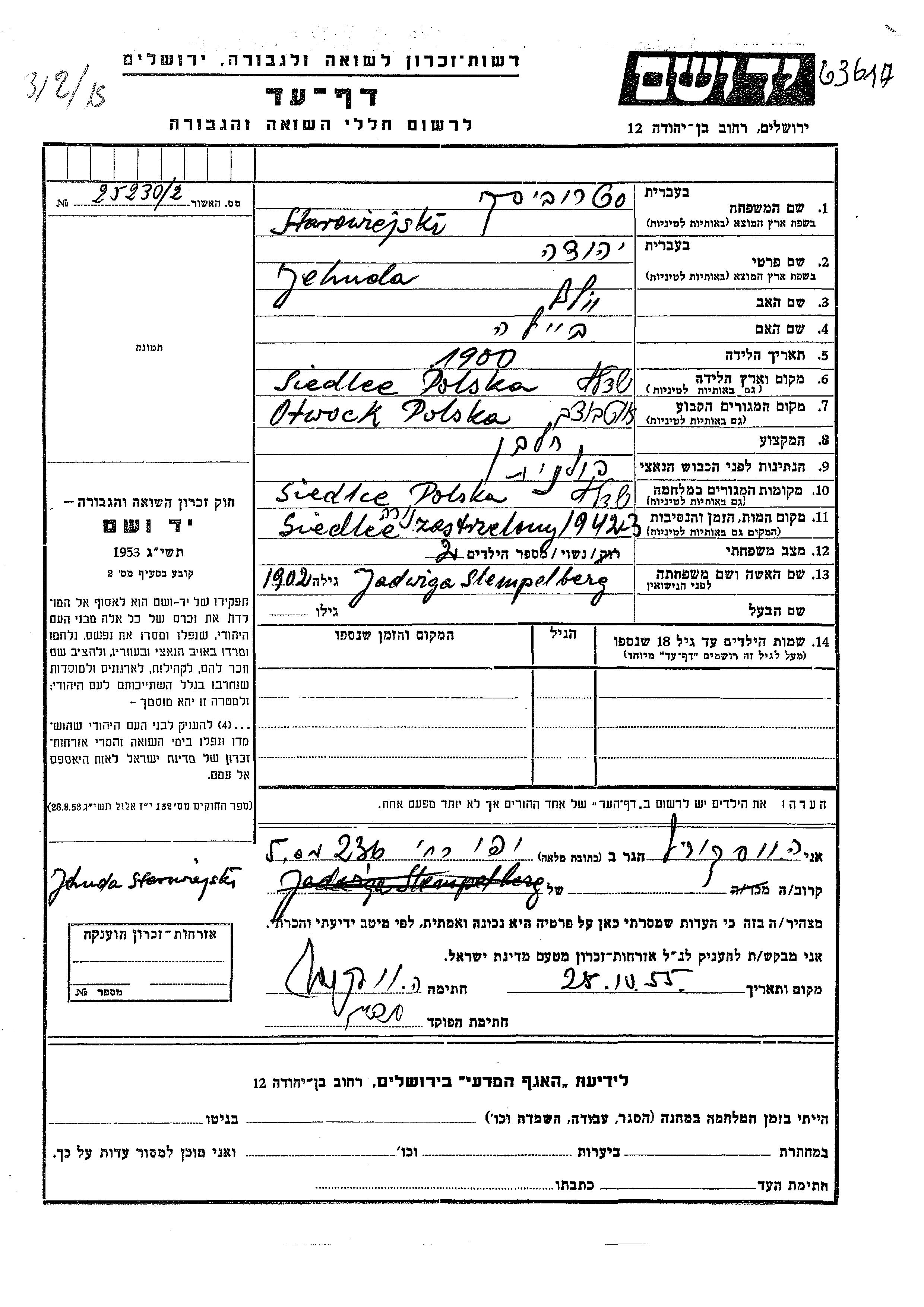 Jehuda wurde in der Schoah ermordet. Todesort: Siedlce, Polen im Jahr 1942.