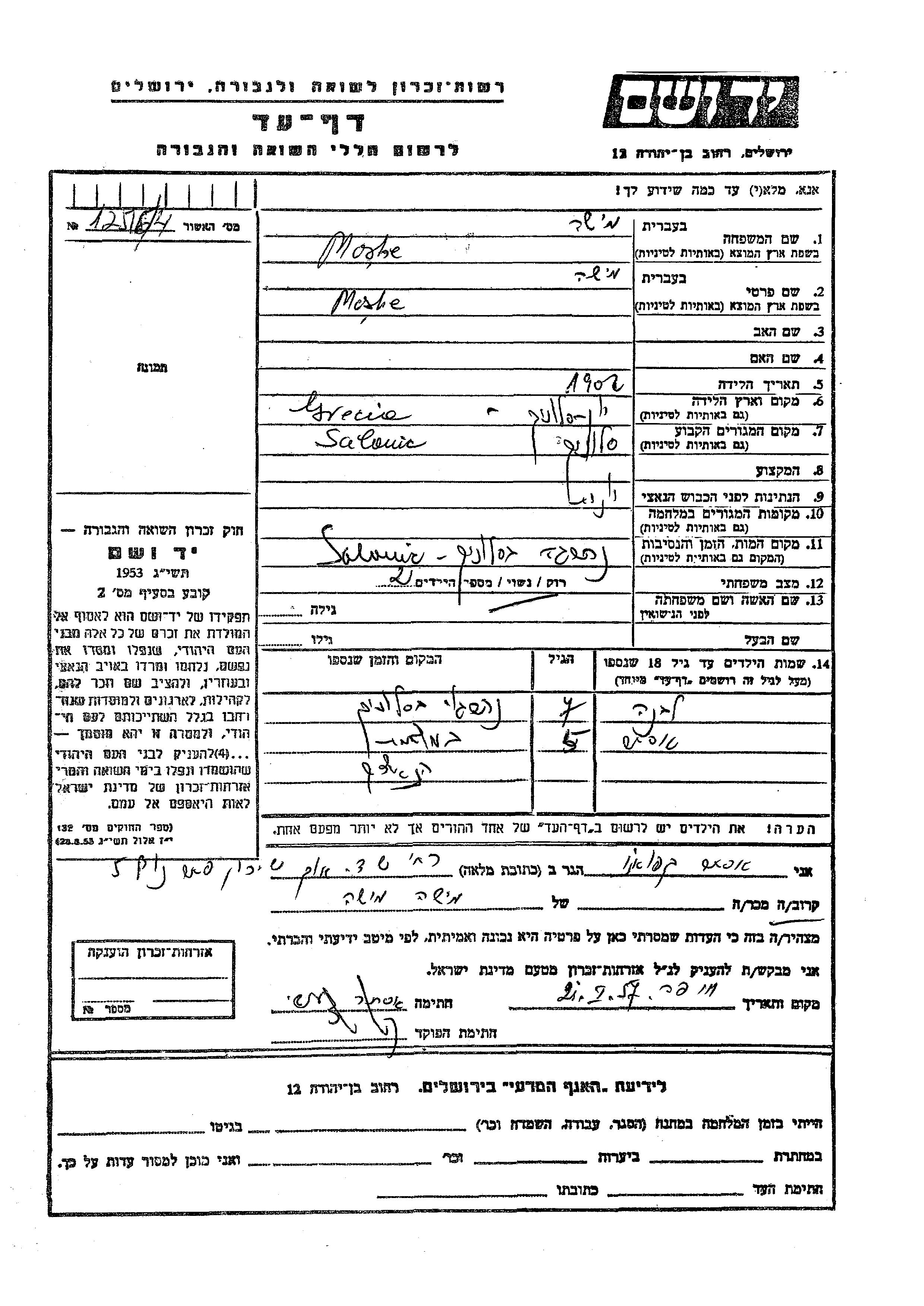 Moshe wurde in der Schoah ermordet. Todesort: Saloniki, Griechenland.