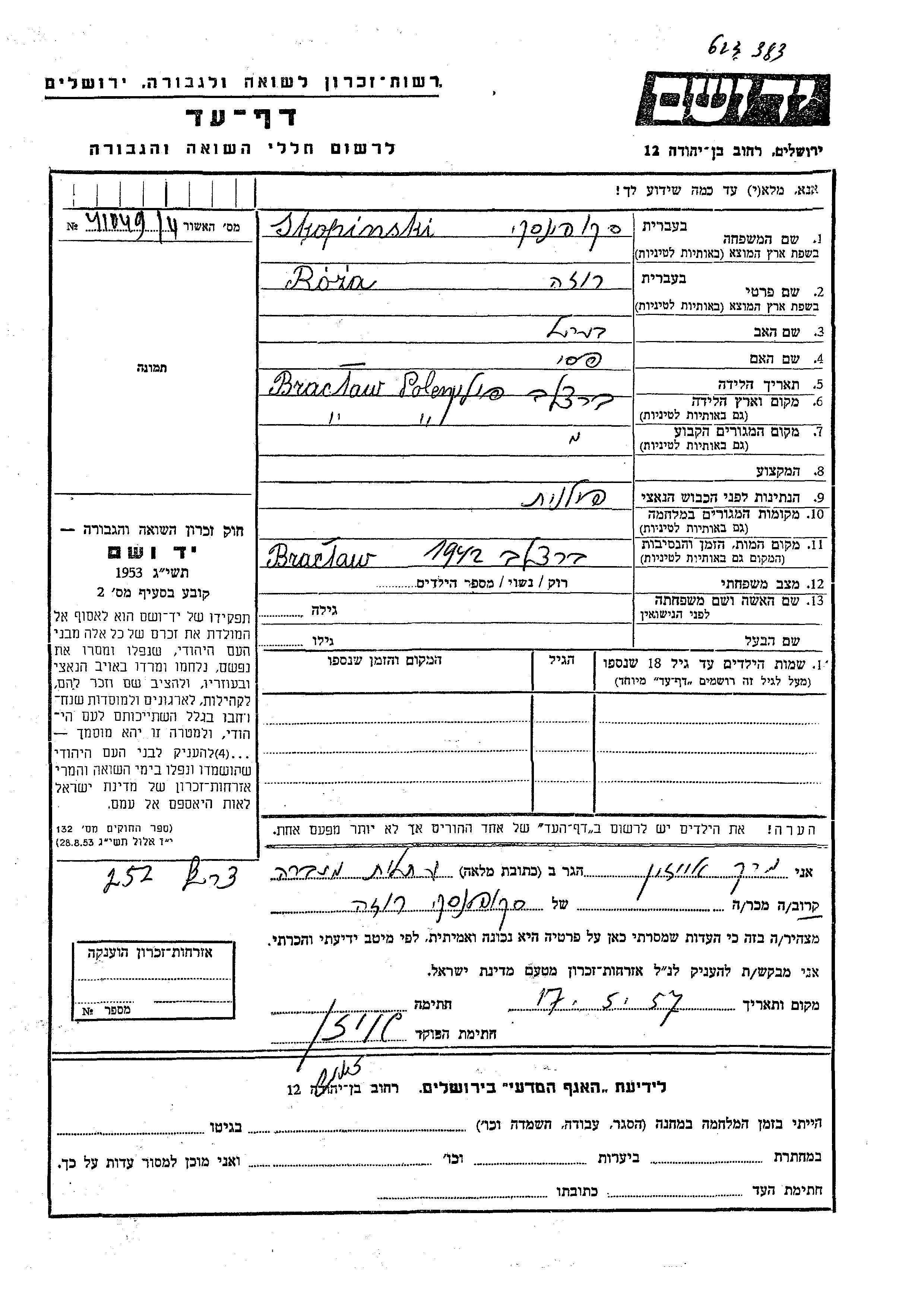 Roza wurde in der Schoah ermordet. Todesort: Braclaw, Ukraine (UdSSR) im Jahr 1942.