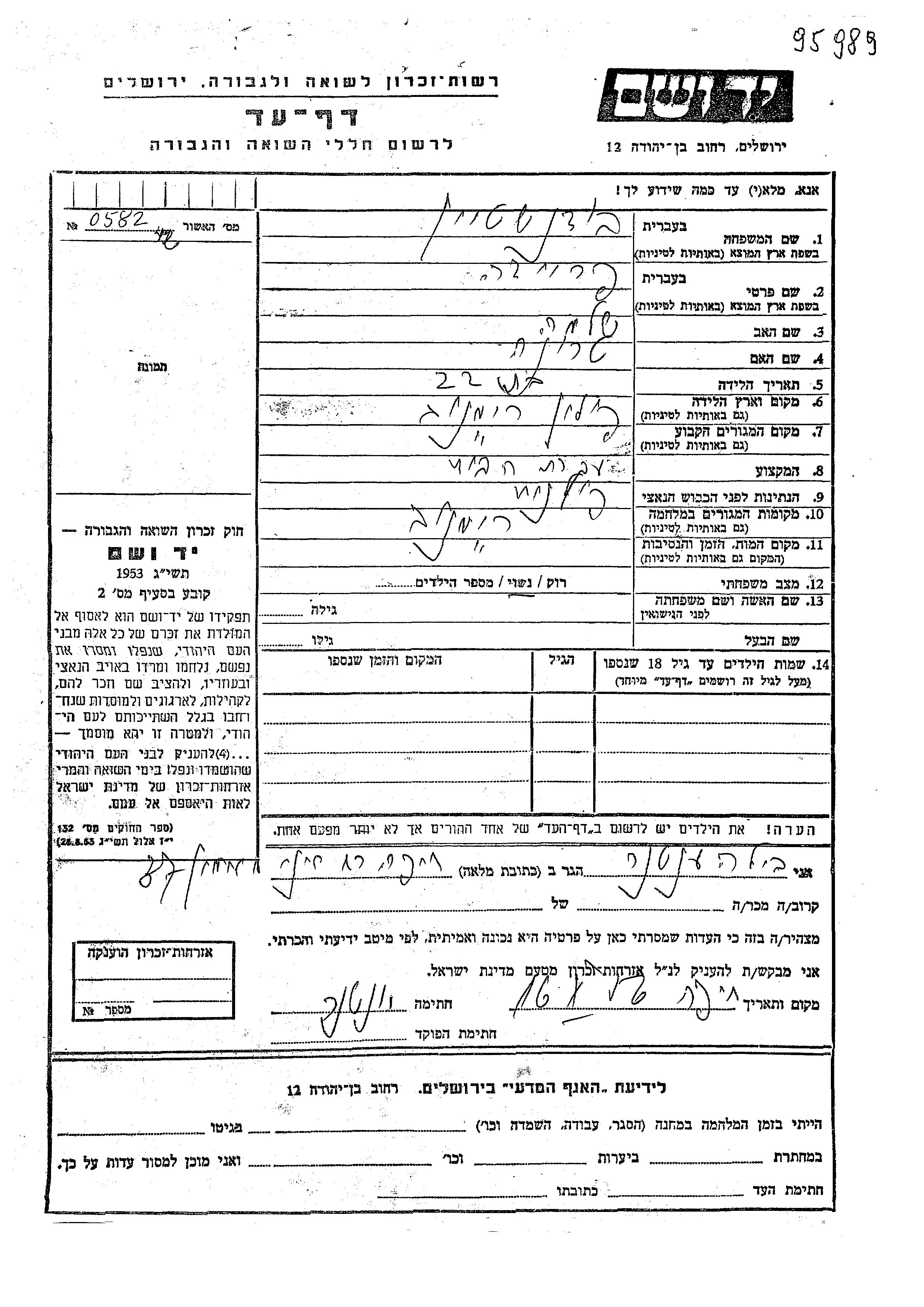 Freida Bodenshtein wurde in Romanov, Polen geboren. Sie war die Tochter von Shlomo und Truna. Sie war Hausfrau und Verheiratet. Vor dem Zweiten Weltkrieg lebte sie in Romanov, Polen. Während des Krieges war sie in Romanov, Russisches Kaiserreich.