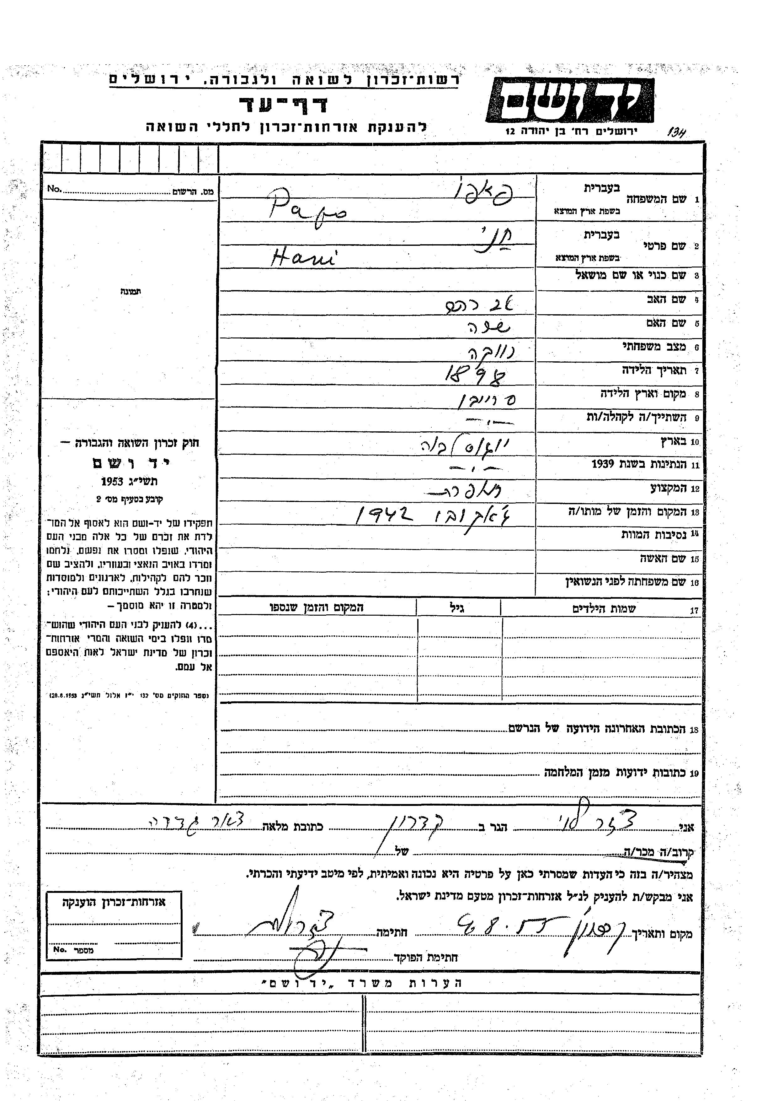 Suche nach einem Todesjahr im Zeitraum der Holocaust: 1933 bis 1945. Bitte wählen Sie 'Exakt' im Auswahlmenü, um nur nach einem einzelnen Jahr zu suchen, alternativ können Sie die flexibleren Optionen '+/- 2 Jahre' oder '+/- 5 Jahre' wählen.