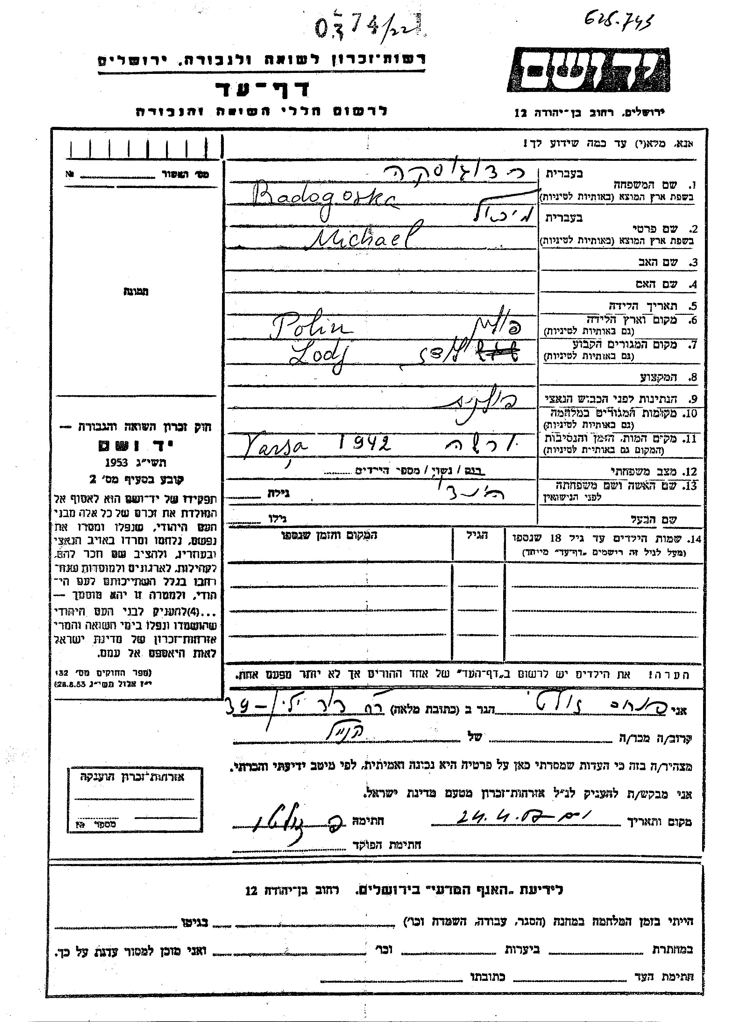 Michael wurde in der Schoah ermordet. Todesort: Warsaw, Polen im Jahr 1942.
