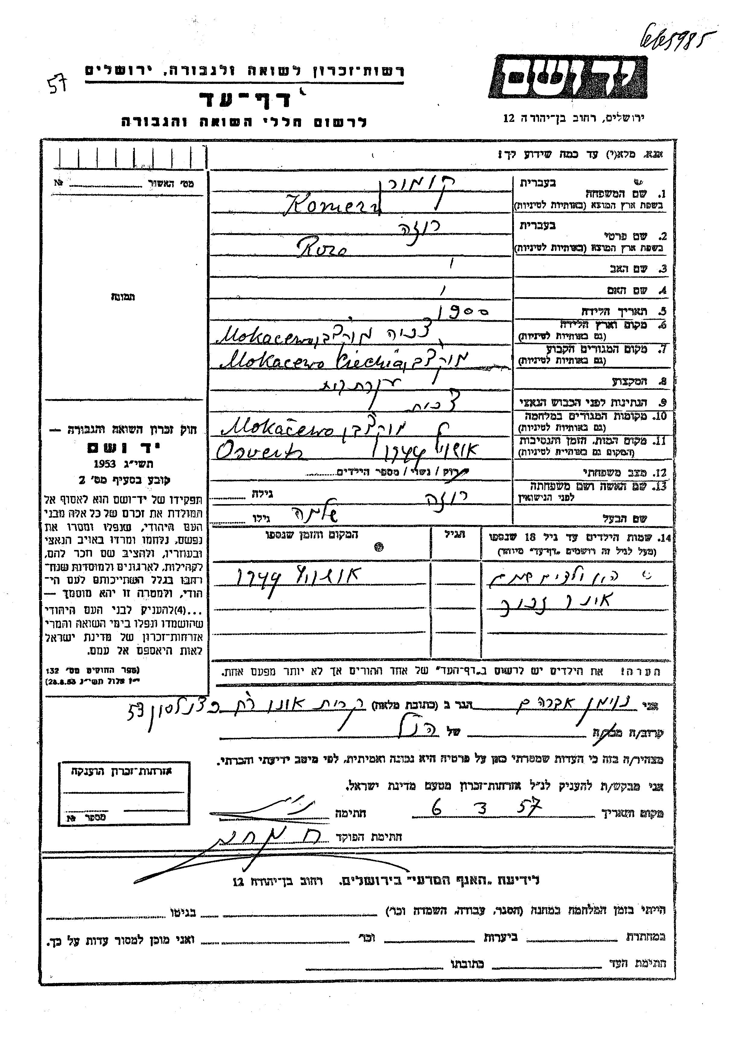 Roza wurde in der Schoah ermordet. Todesort: Oświęcim, Polen im Jahr 1944.