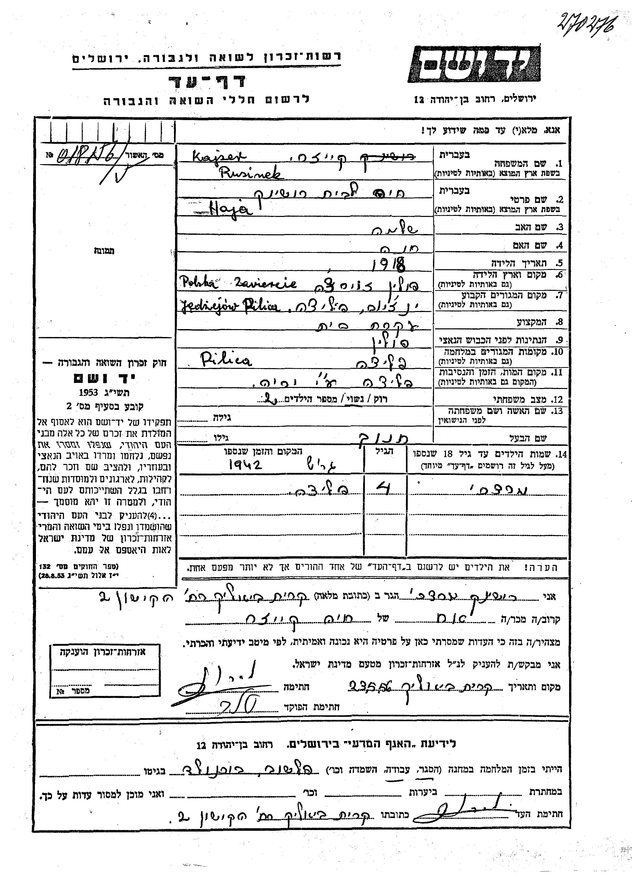 Haja wurde in der Schoah ermordet. Todesort: Pilica, Polen.