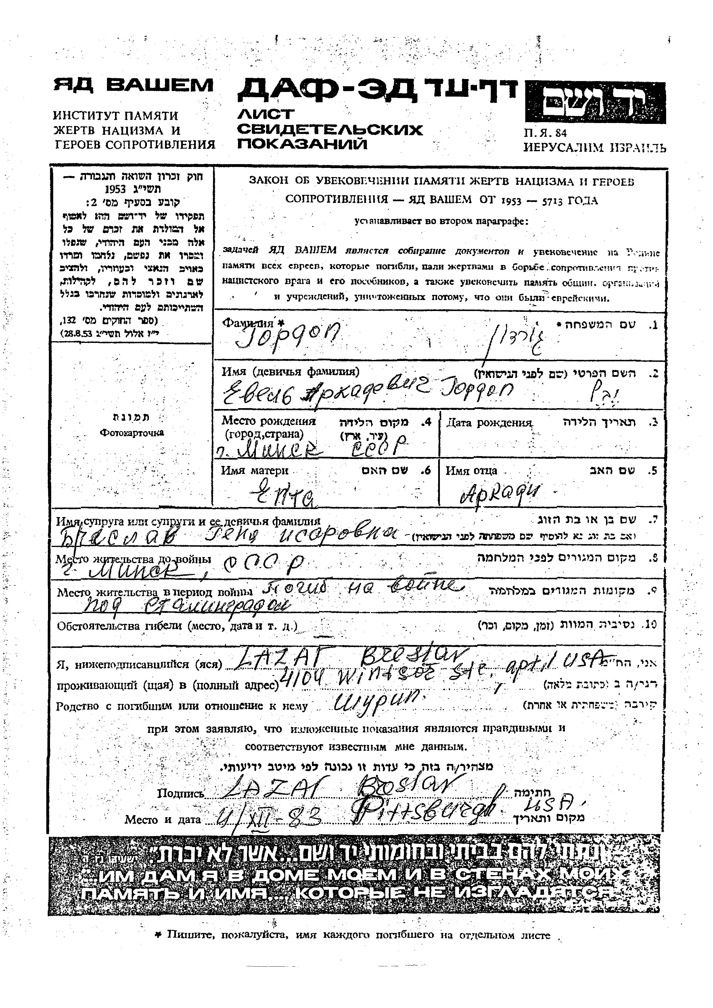 Evel wurde in der Schoah ermordet. Todesort: Stalingrad, Russland (UdSSR).