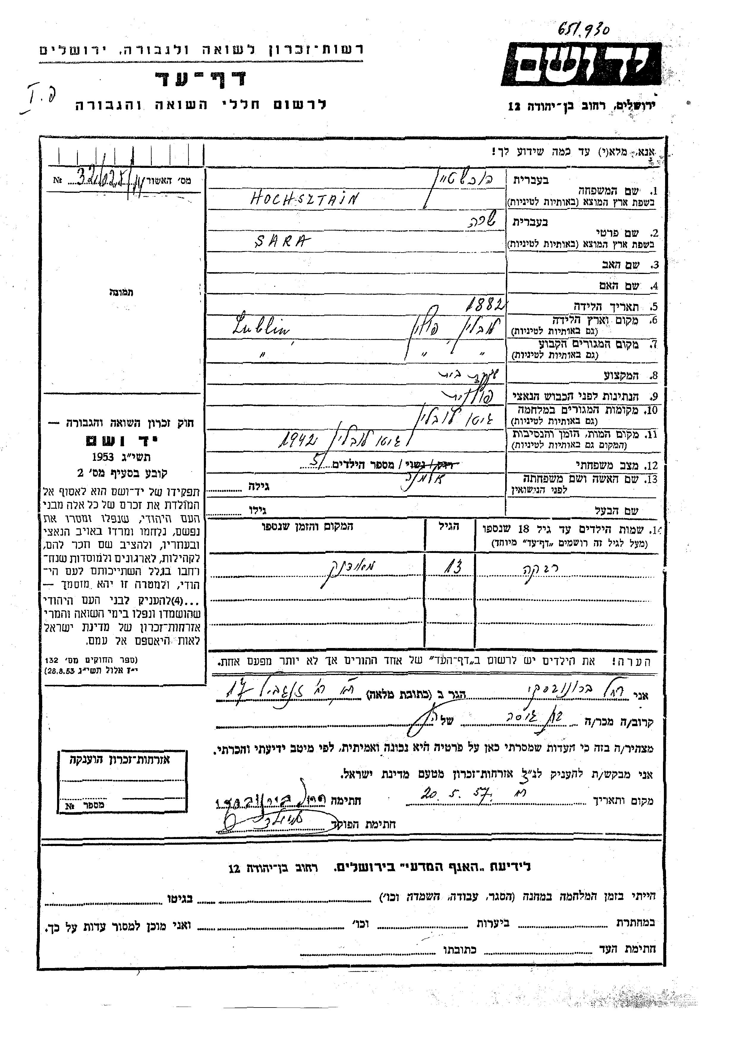 Sara wurde in der Schoah ermordet. Todesort: Lublin, Polen im Jahr 1942.