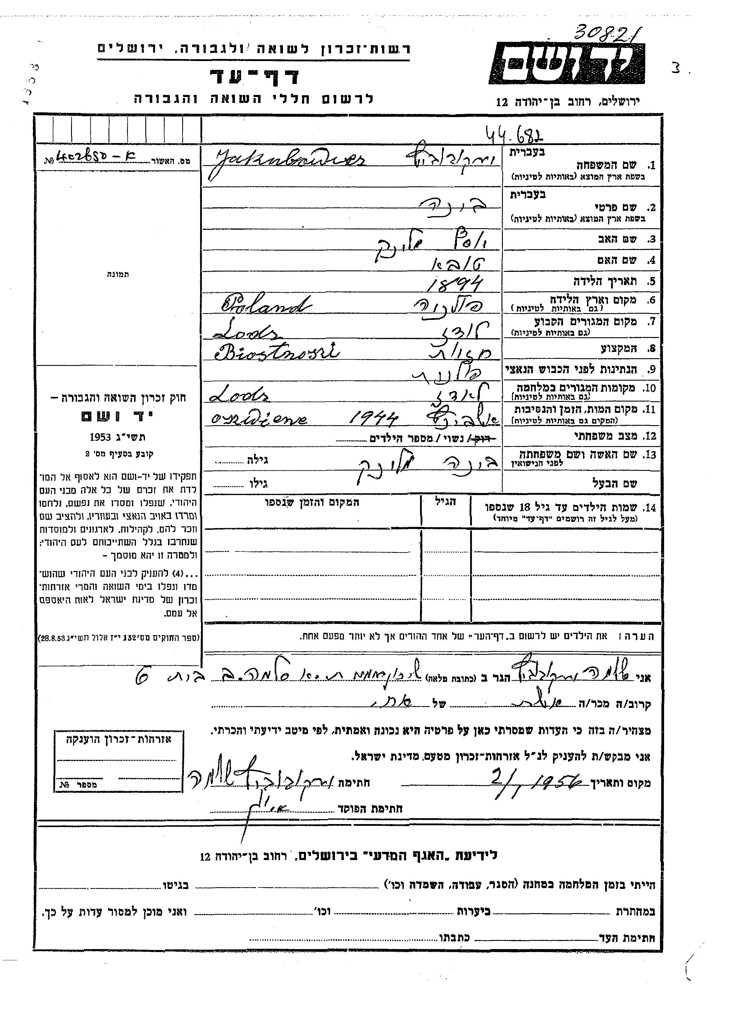Bina wurde in der Schoah ermordet. Todesort: Auschwitz, Polen im Jahr 1944.