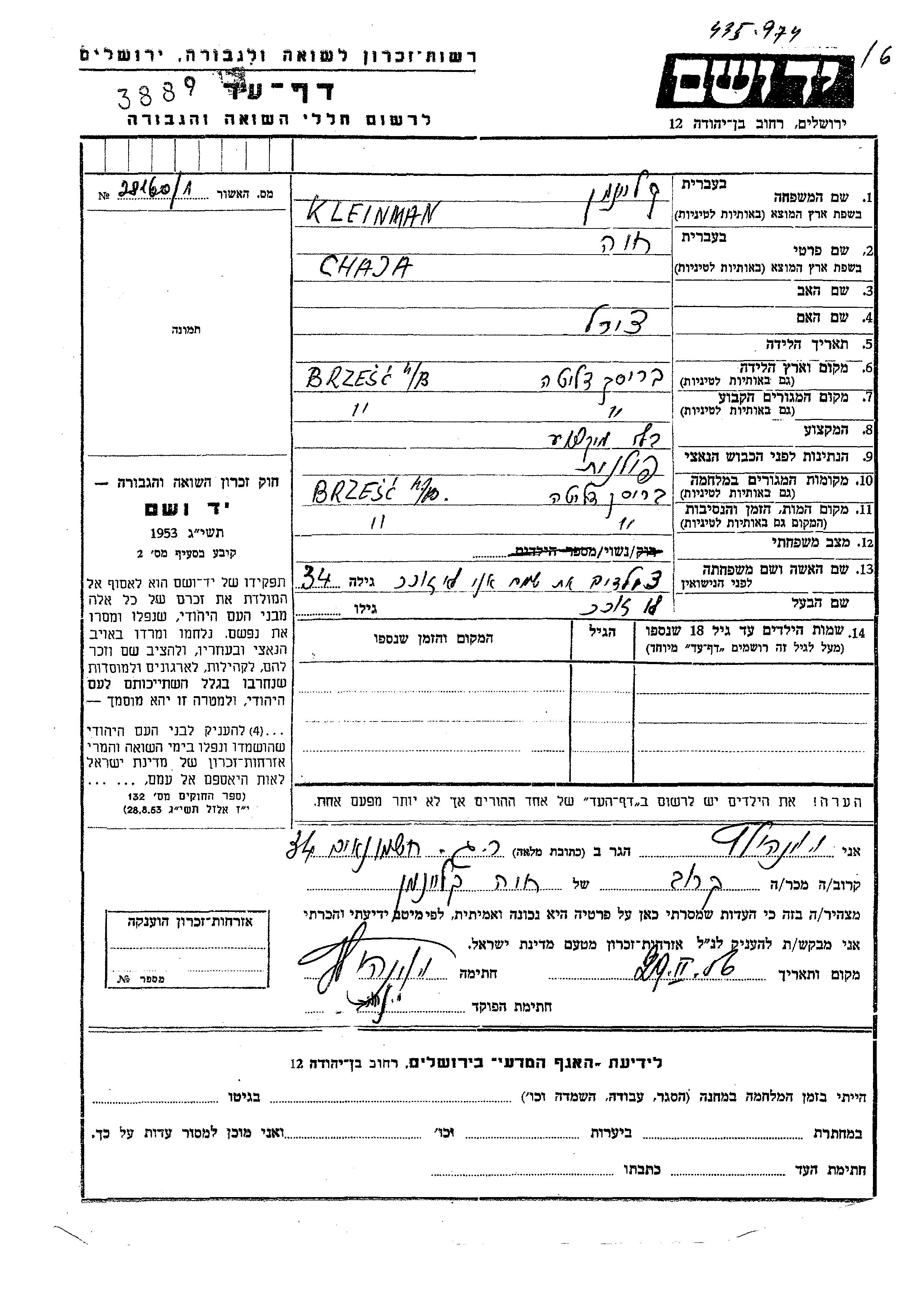 Chaja wurde in der Schoah ermordet. Todesort: Brisk, Polen.