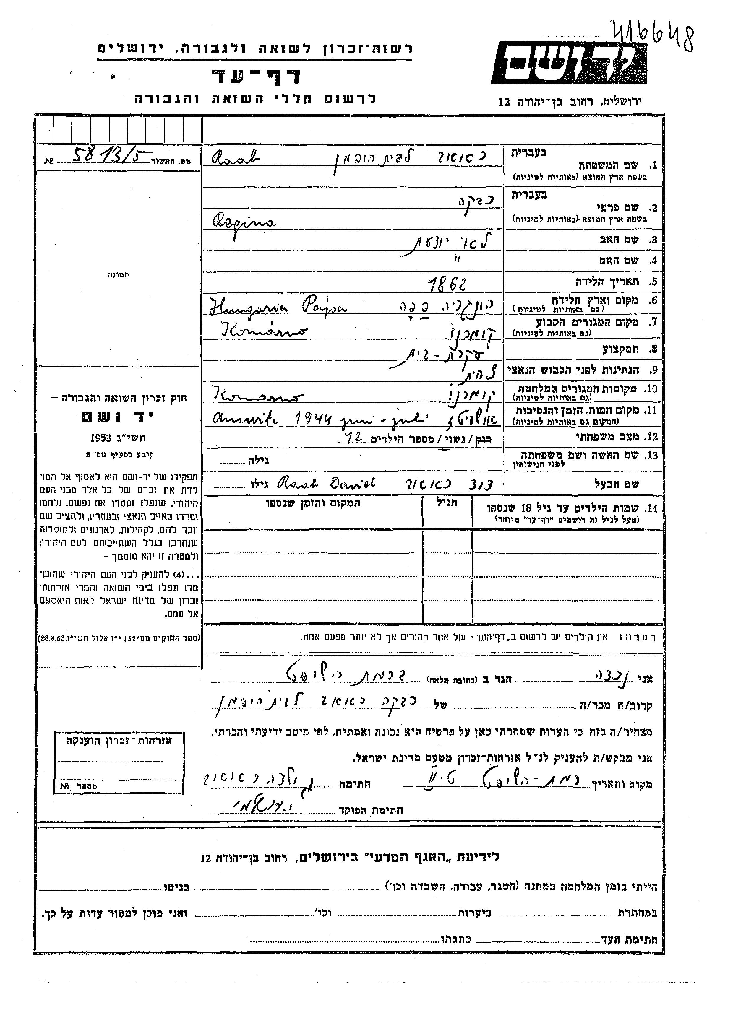 Regina Rivka wurde in der Schoah ermordet. Todesort: Auschwitz, Polen im Jahr 1944.