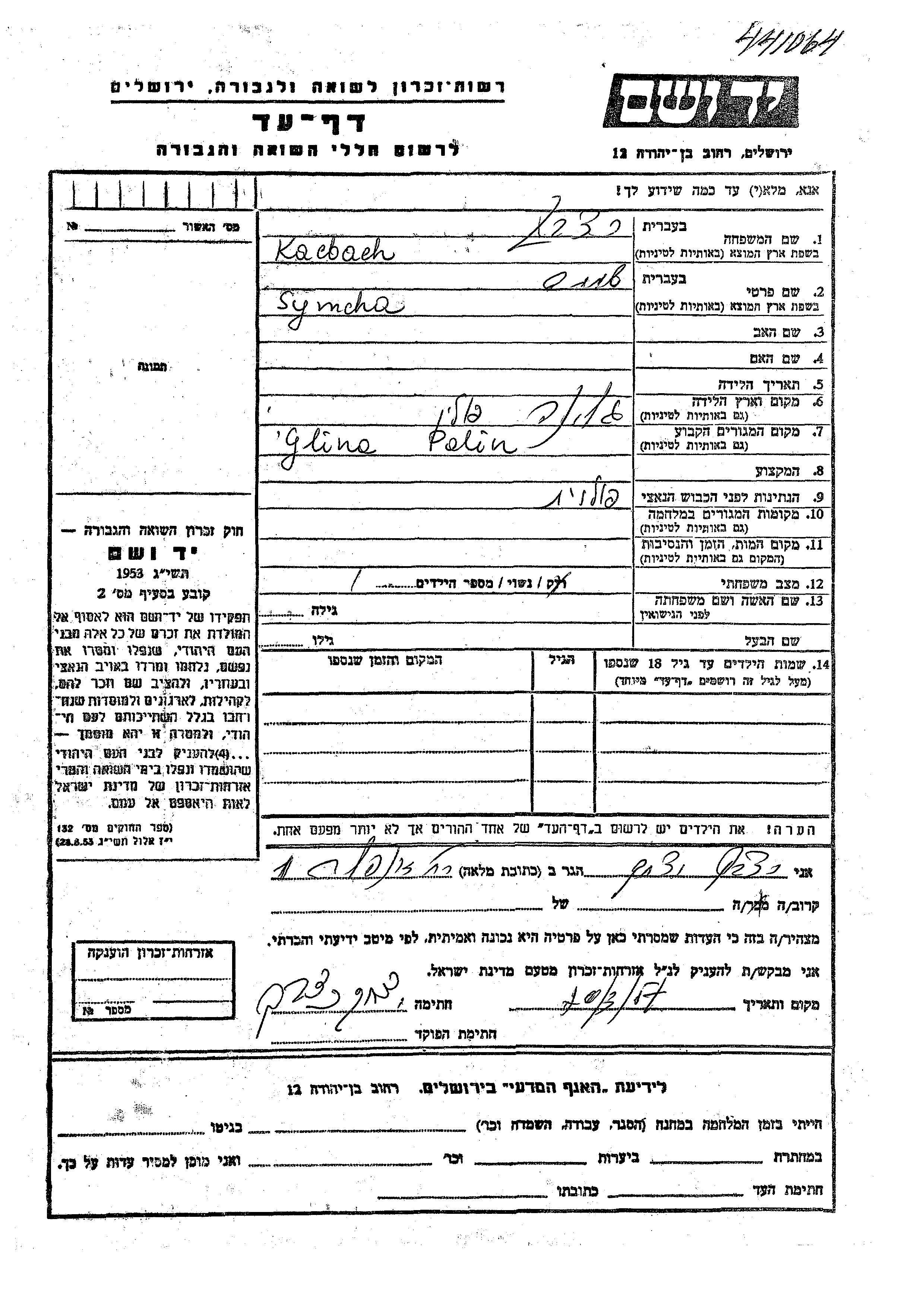 Symcha Kacbach wurde in Glinna, Polen geboren. Er war Verheiratet. Vor dem Zweiten Weltkrieg lebte er in Glinna, Polen.