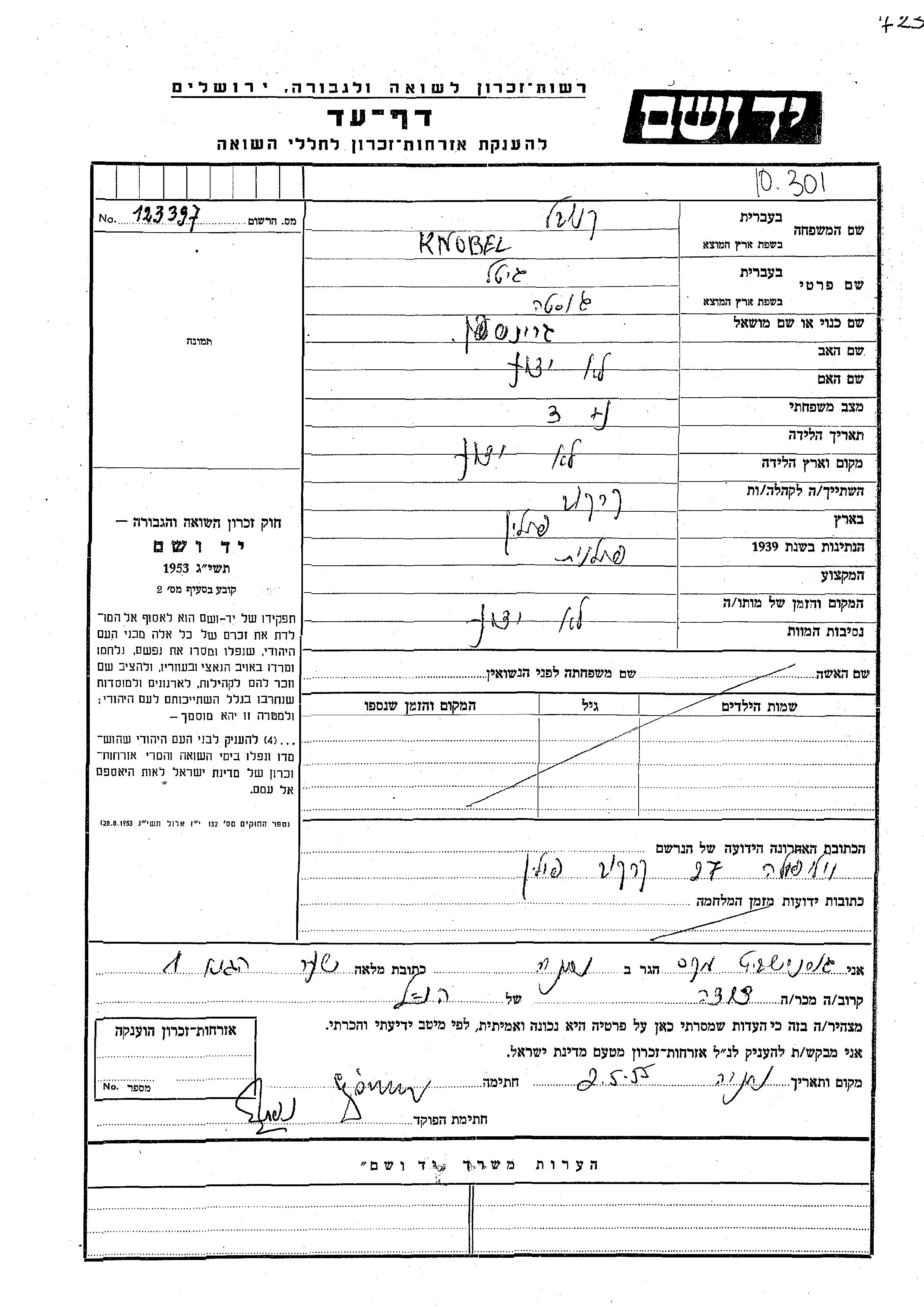 Knibel Knobel Gitel Gusta Krakow, Polen Gedenkblatt