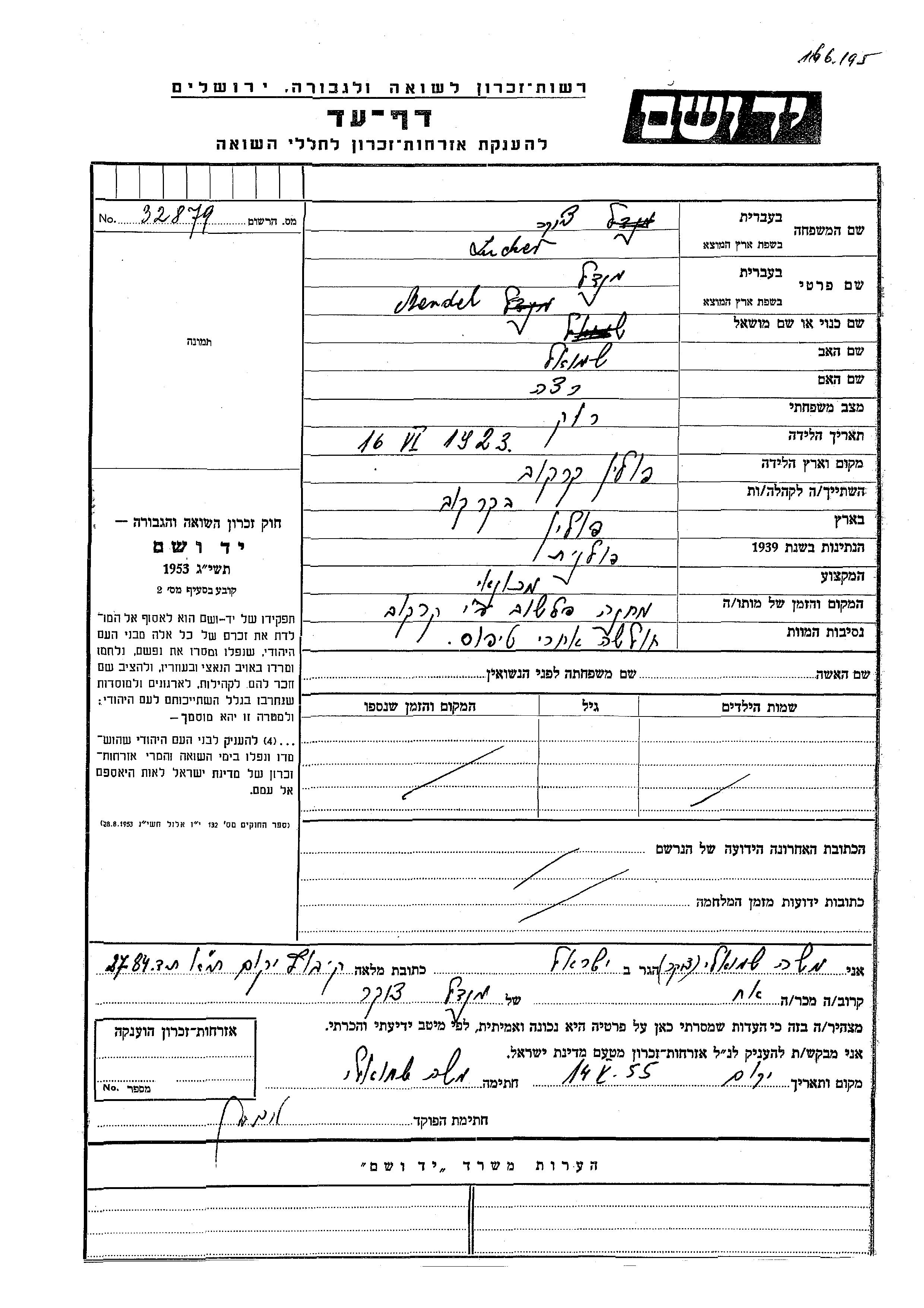 Mendel wurde in der Schoah ermordet. Todesort: Plaszow, Polen.