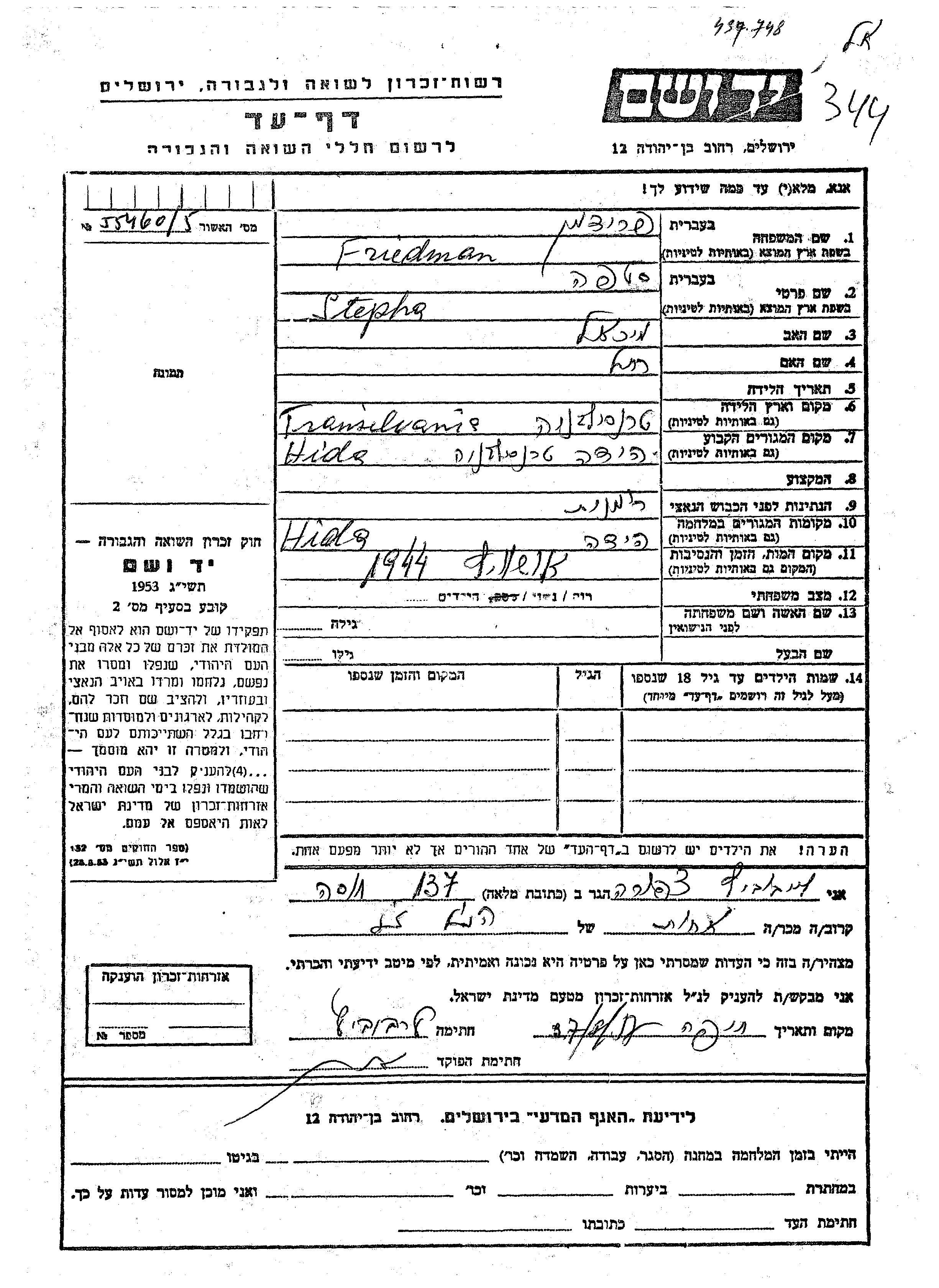 Stepha Friedman wurde in Transylvania, Rumänien geboren. Sie war die Tochter von Mikhael und Rakhel. Vor dem Zweiten Weltkrieg lebte sie in Hida, Rumänien. Während des Krieges war sie in Hida, Rumänien.