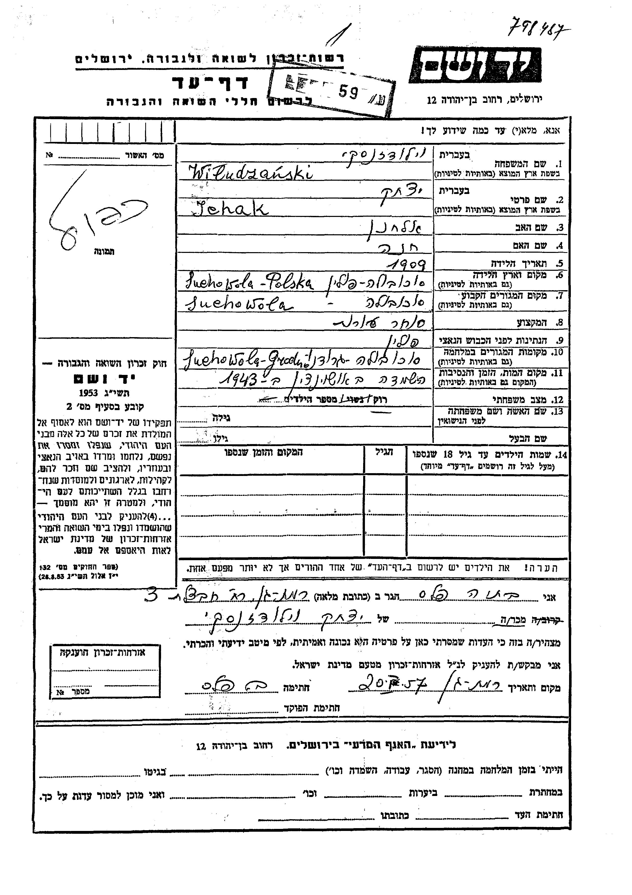 Wiludzanski Ichak 1909 Suchowola, Polen Gedenkblatt