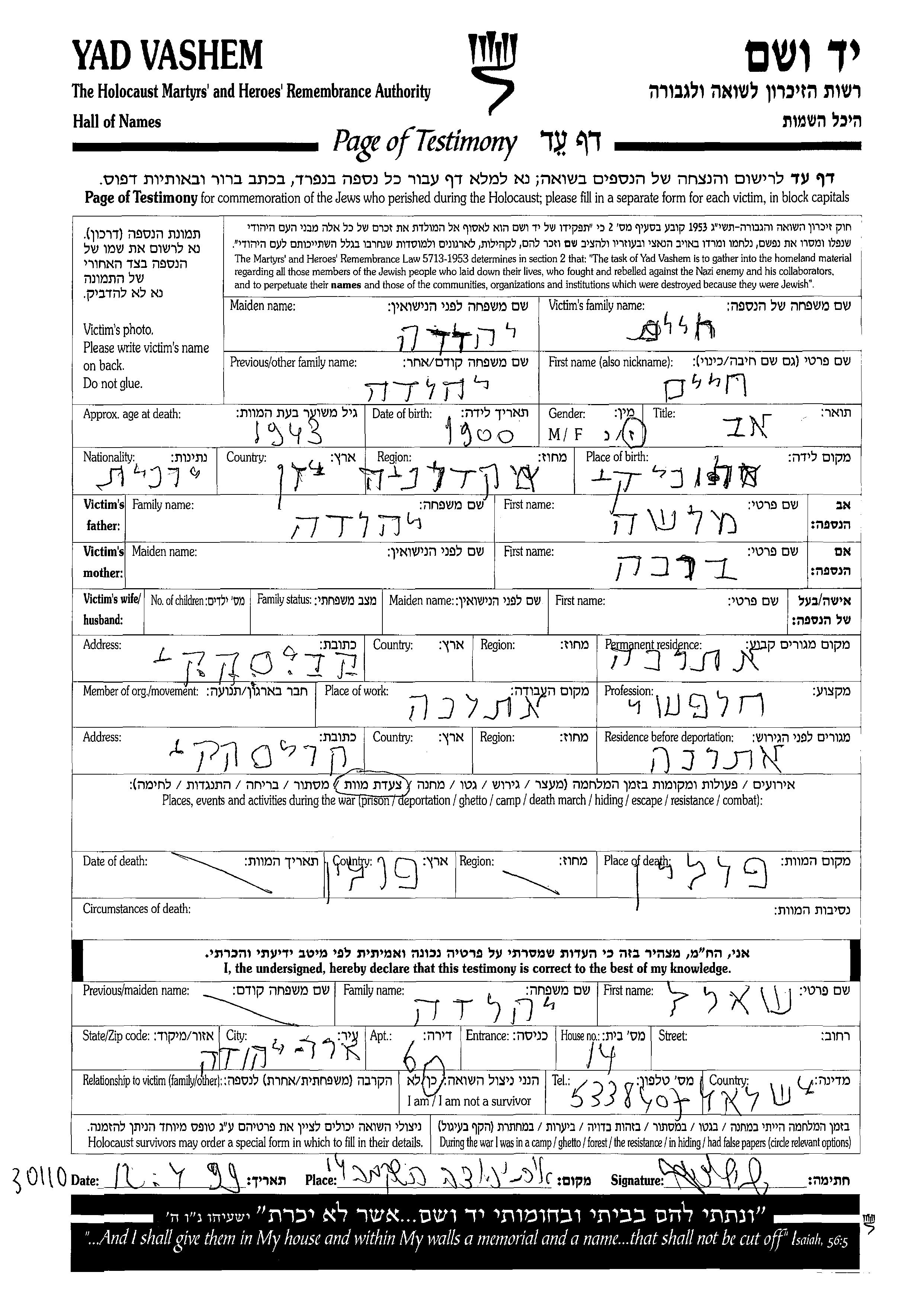 Khaim Iehuda wurde im Jahr 1900 in Salonico, Griechenland geboren. Er war der Sohn von Moshe und Brakha. Er war Freiberufler/-in und Verheiratet. Vor dem Zweiten Weltkrieg lebte er in Athenai, Griechenland. Während des Krieges war er in Athenai, Griechenland.