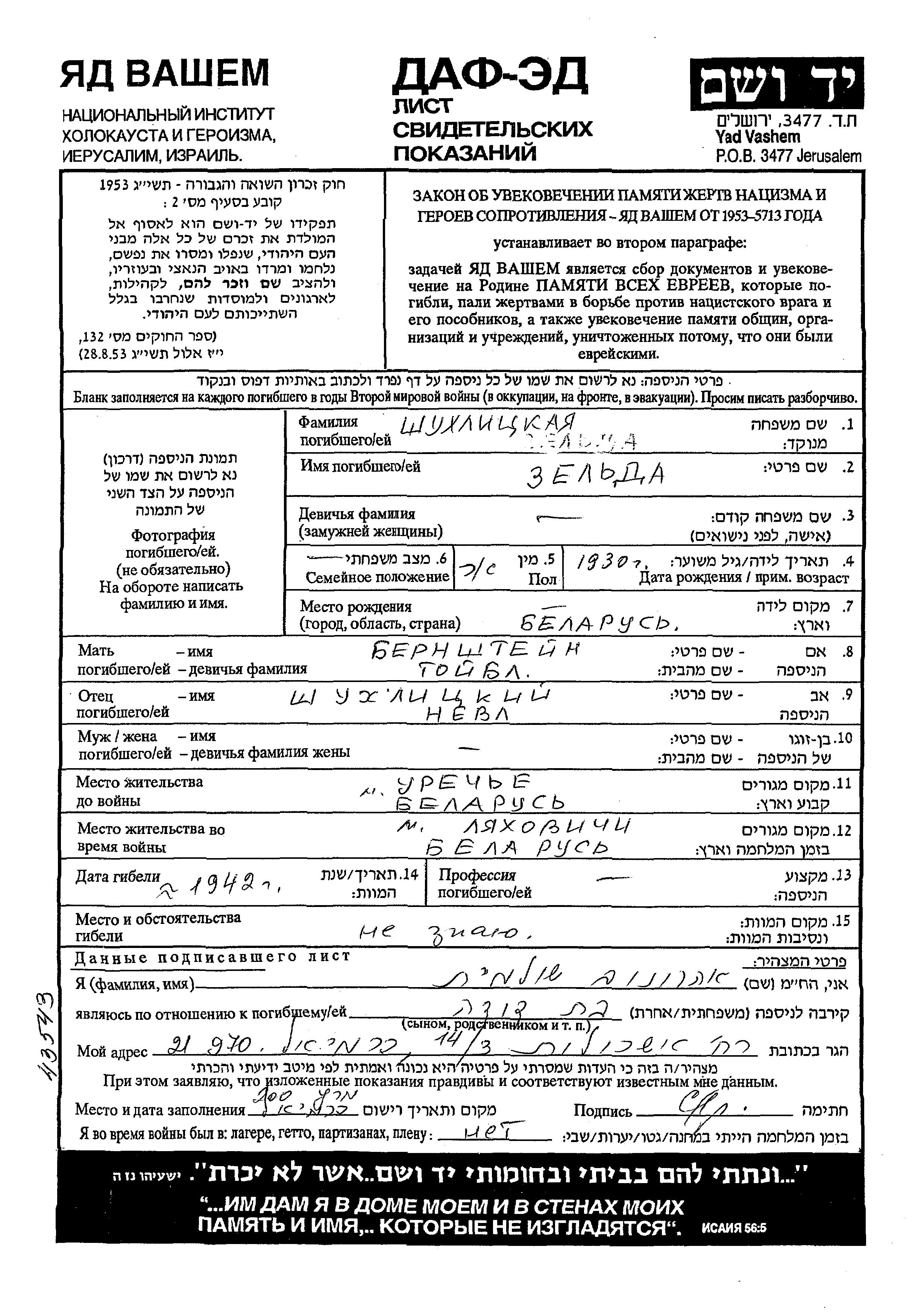 Zelda wurde in der Schoah ermordet. Todesort: unbekannt im Jahr 1942.