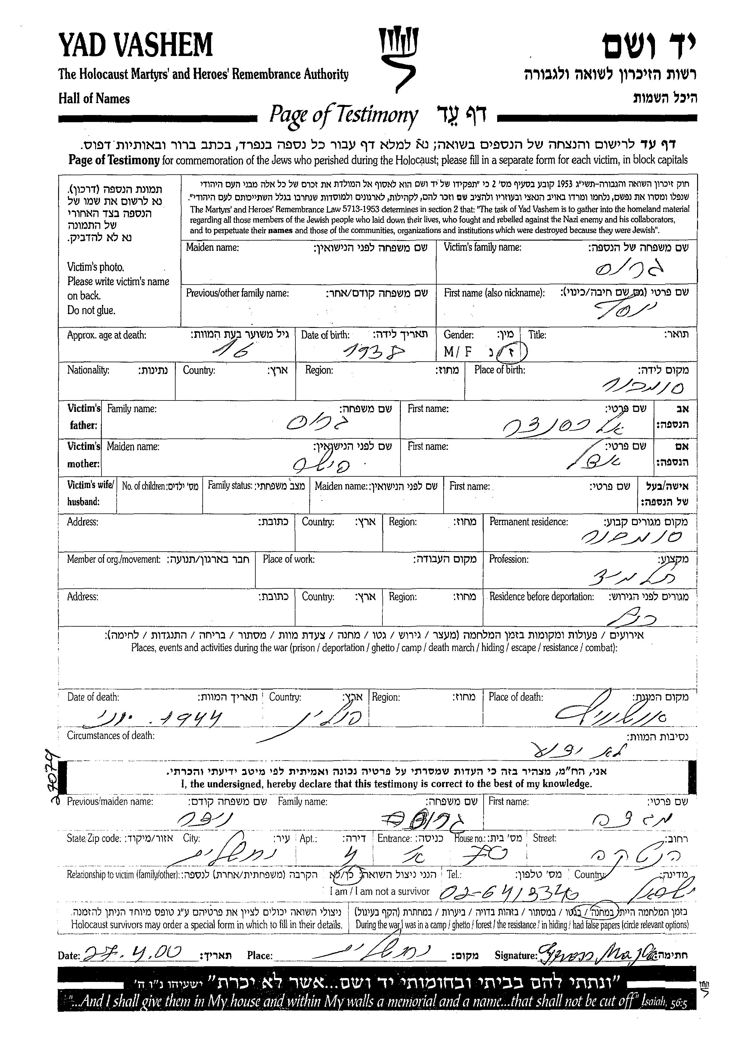 Yosef wurde in der Schoah ermordet. Todesort: Auschwitz II - Birkenau, Polen im Jahr 1944.