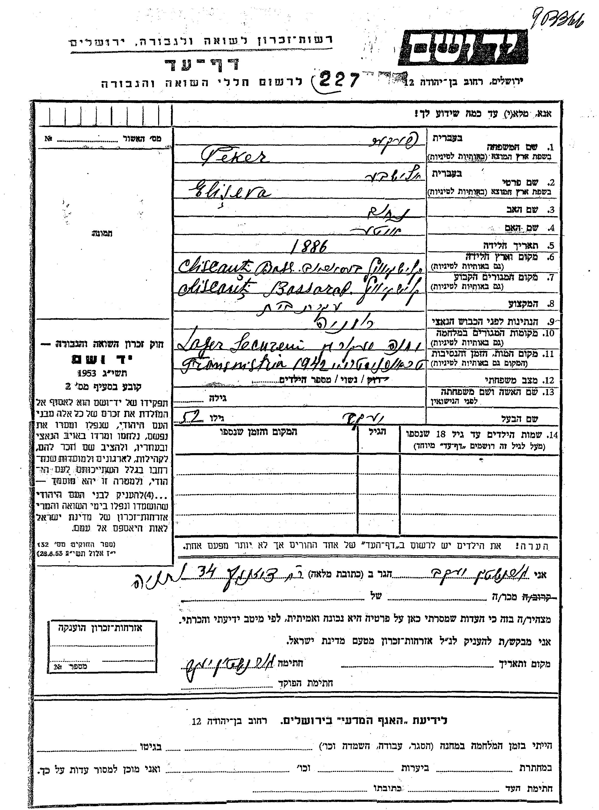 Eliseva Paker wurde im Jahr 1886 in Cliscauti, Rumänien geboren. Sie war die Tochter von Nakhum und Ite. Sie war Hausfrau und mit Yaakov Verheiratet. Vor dem Zweiten Weltkrieg lebte sie in Cliscauti, Rumänien. Während des Krieges war sie in Secureni, Rumänien.