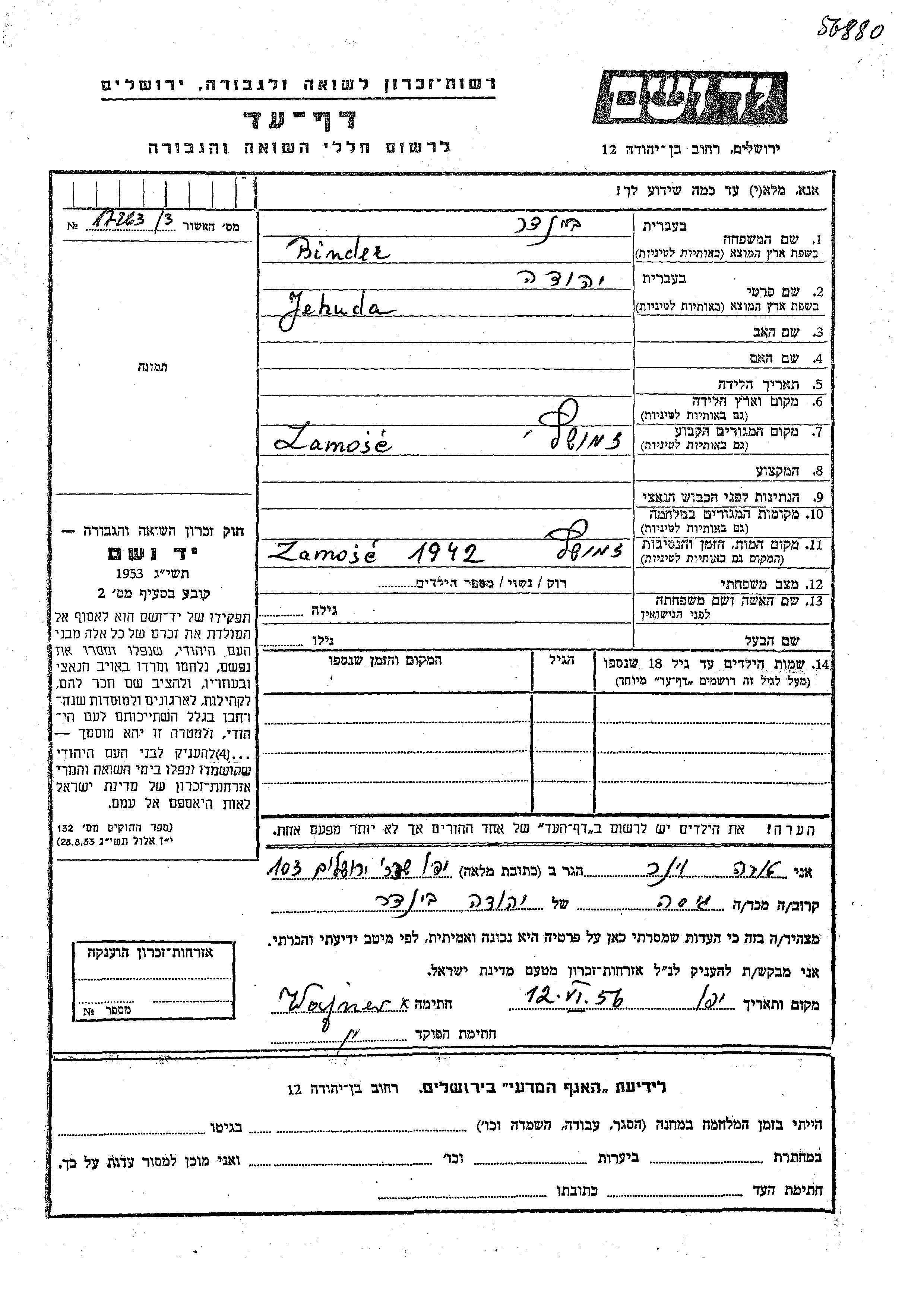 Yehuda wurde in der Schoah ermordet. Todesort: Zamosc, Polen im Jahr 1942.