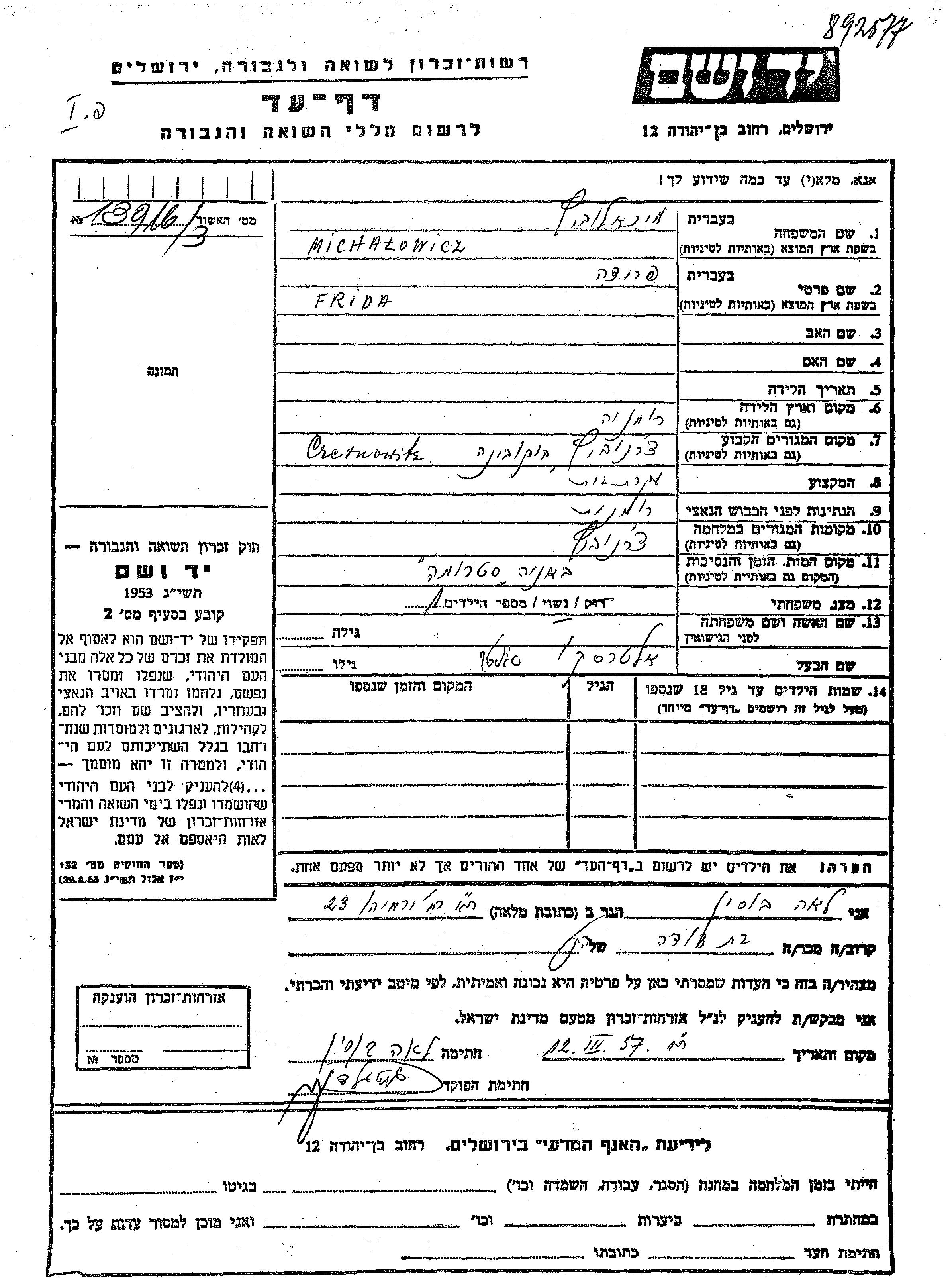 Yad Vashem - Gedenkblätter Sammlung