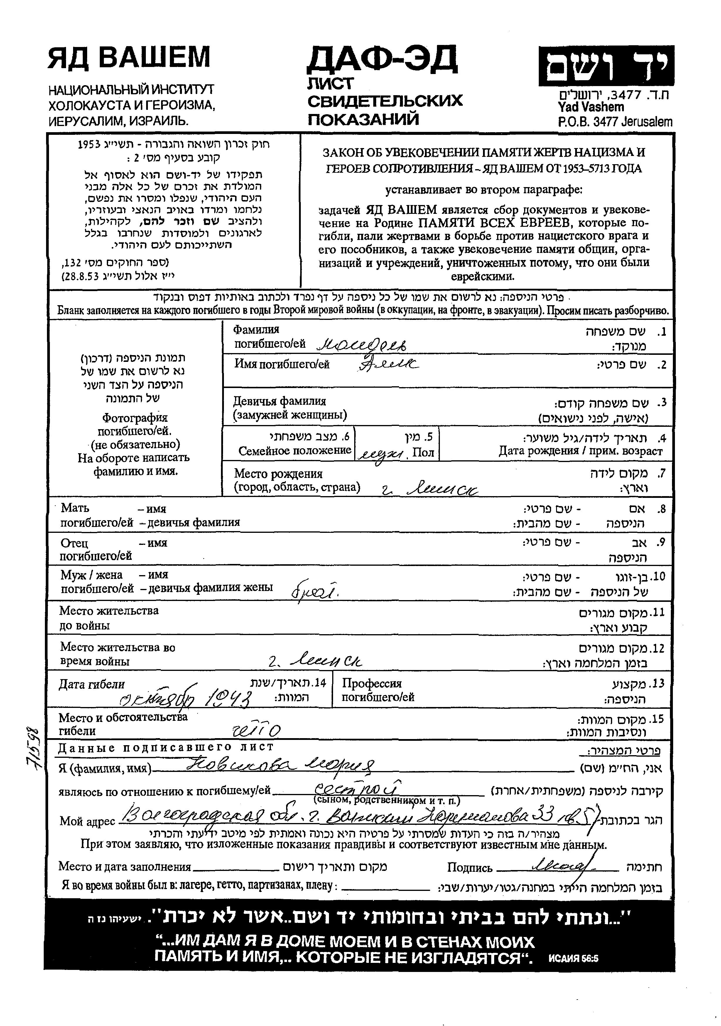 Alik wurde in der Schoah ermordet. Todesort: Minsk, Weißrussland (UdSSR) im Jahr 1943.